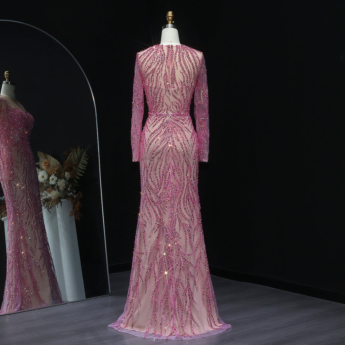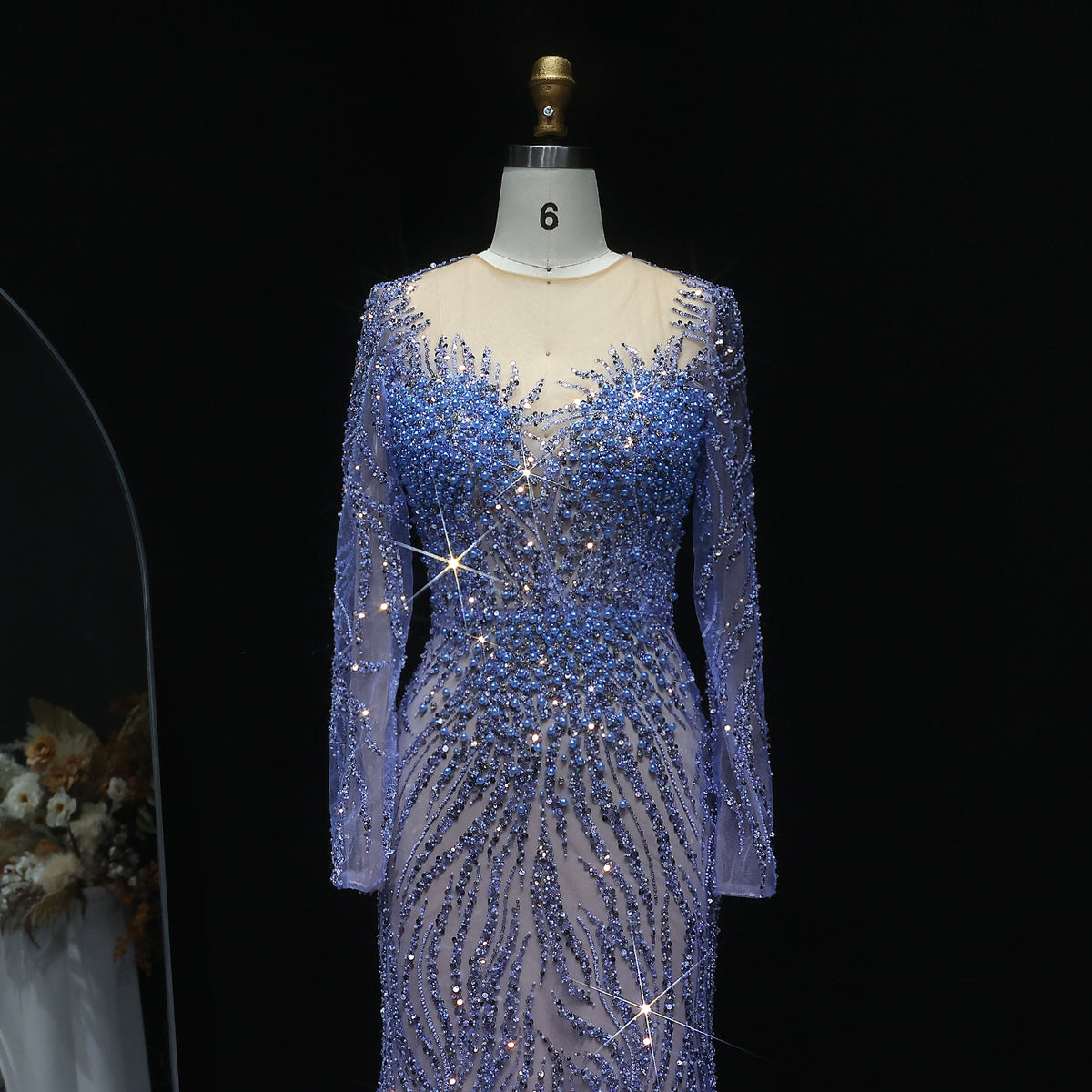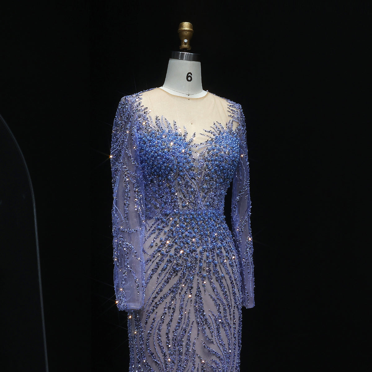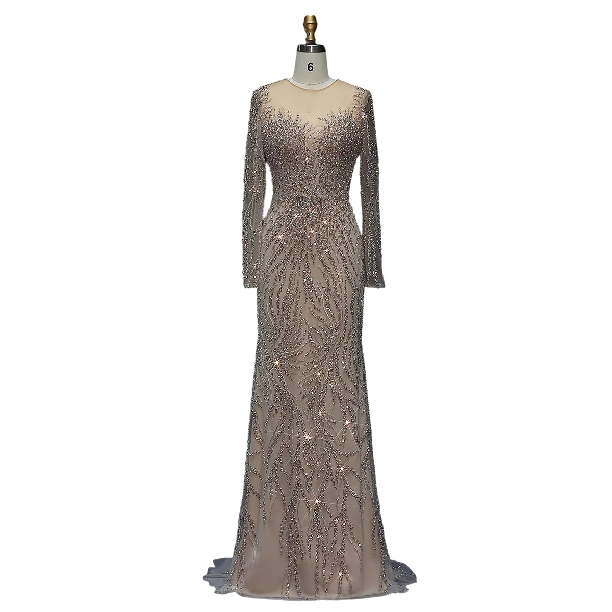 Luxury White Nude Long Sleeves Mermaid Evening Dress SS684
