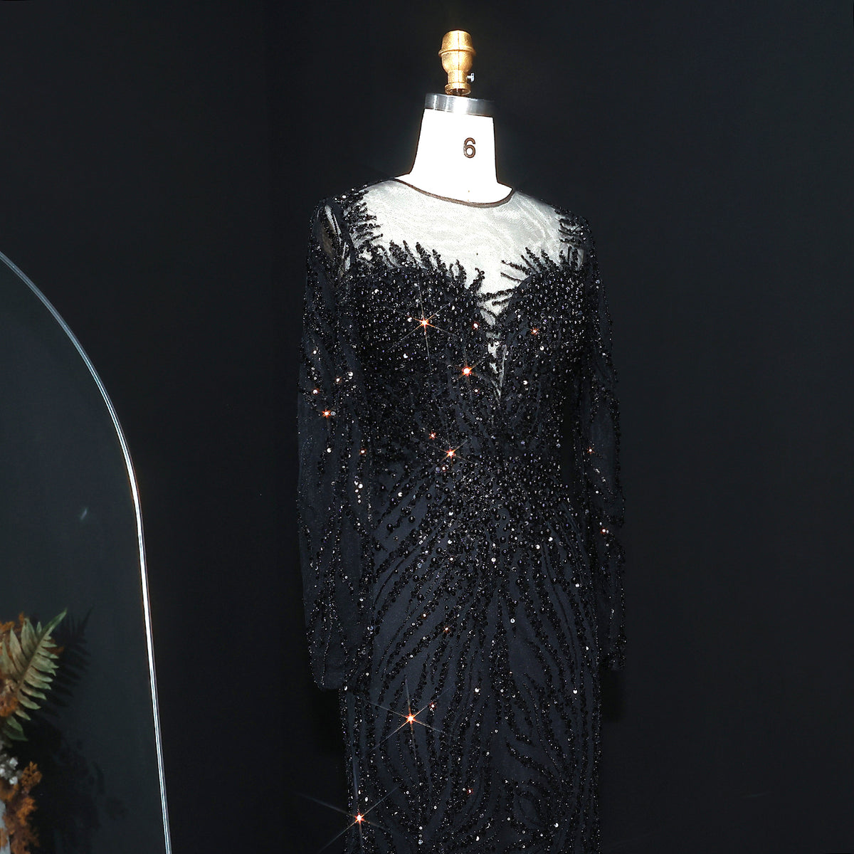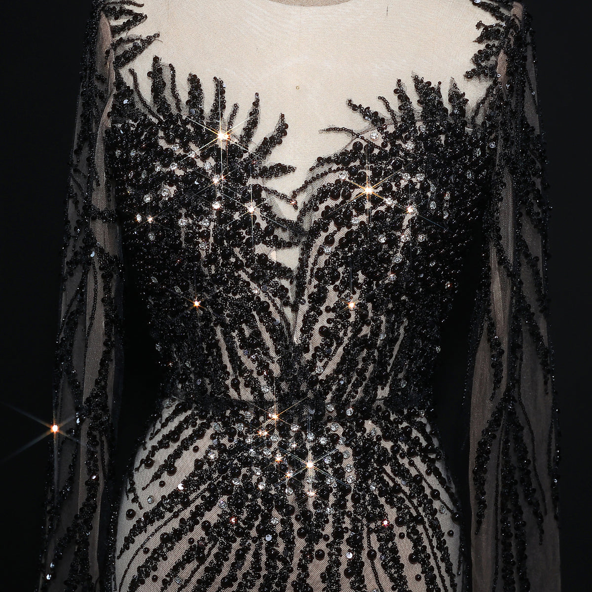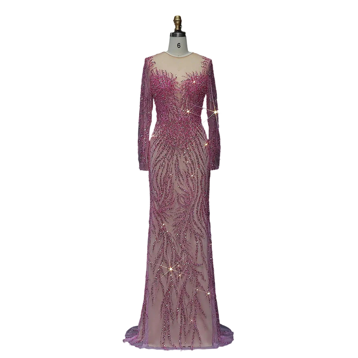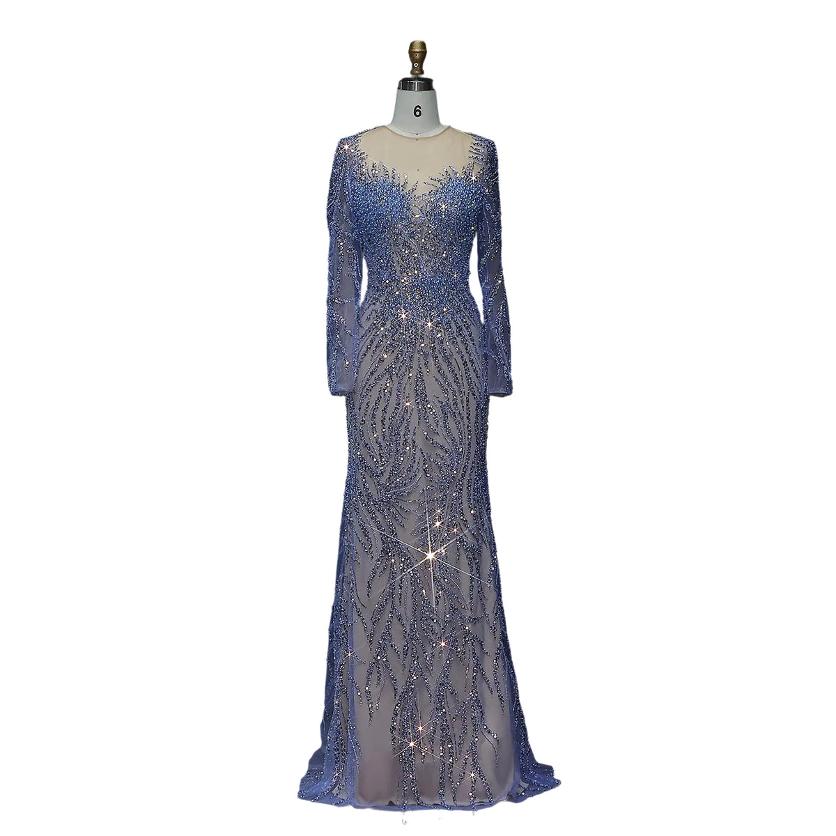 Luxury White Nude Long Sleeves Mermaid Evening Dress SS684