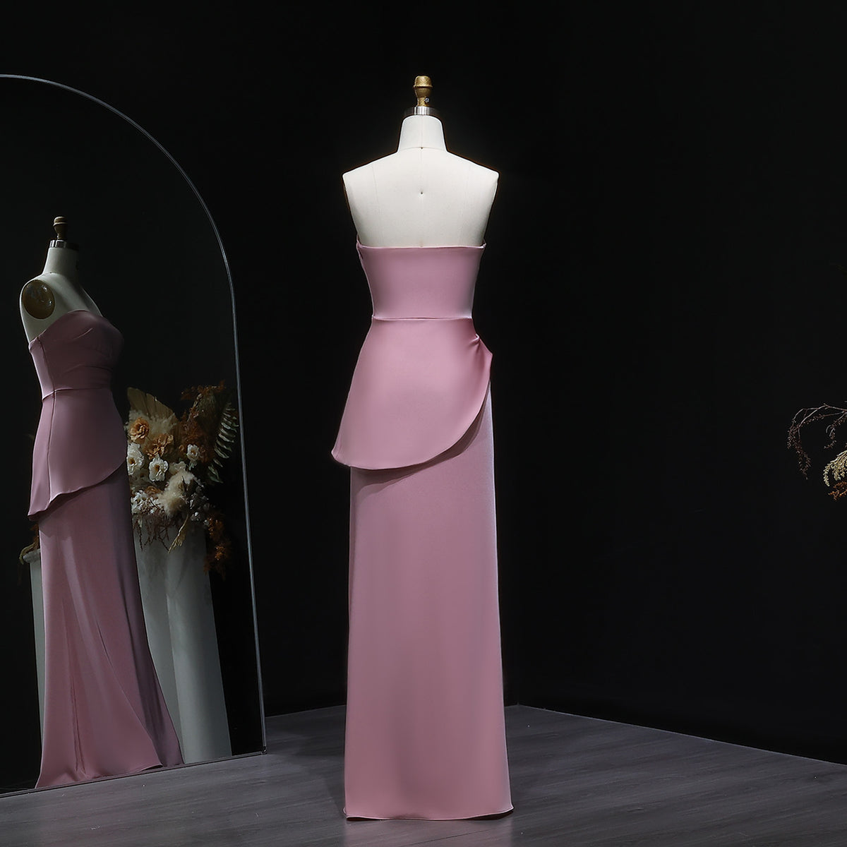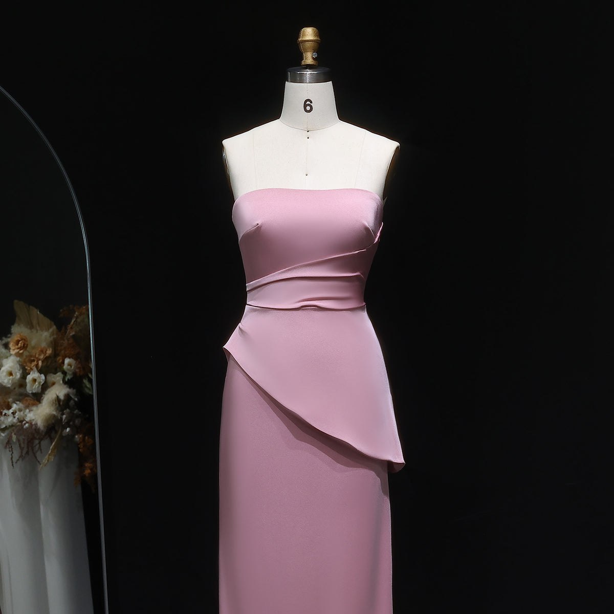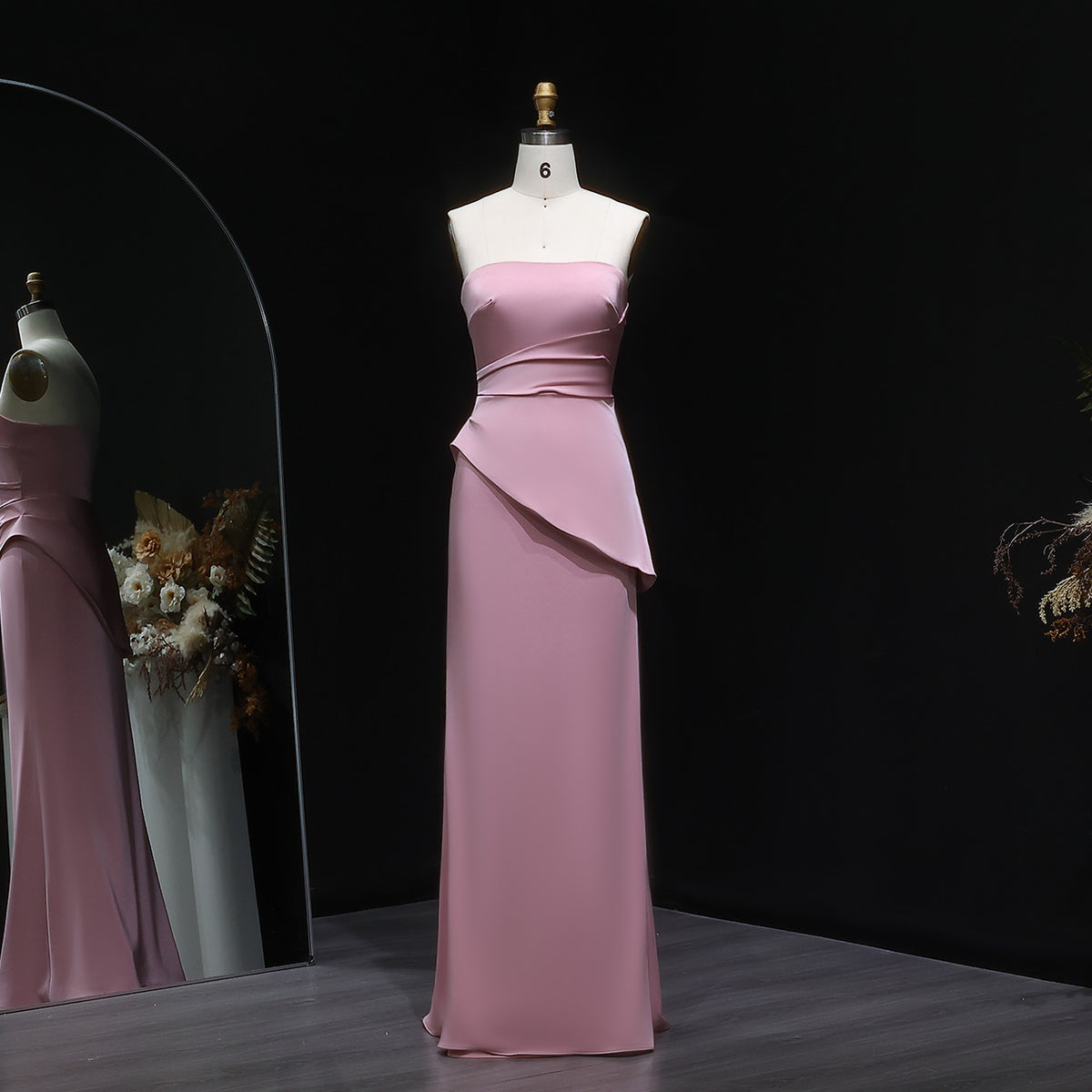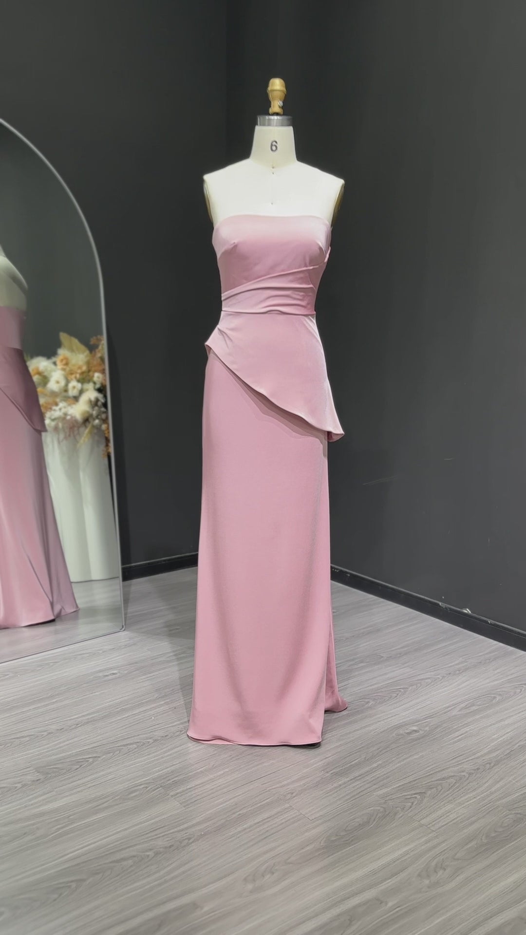 This elegant coral pink strapless evening dress features delicately crafted pleats that enhance its sophisticated silhouette. Designed for formal occasions, the dress offers a flattering fit that complements your figure while providing a timeless, graceful look. Its strapless design highlights the neckline and shoulders, making it an ideal choice for upscale events and celebrations. Crafted with attention to detail, this dress combines comfort with refined style to ensure you stand out with effortless elegance.