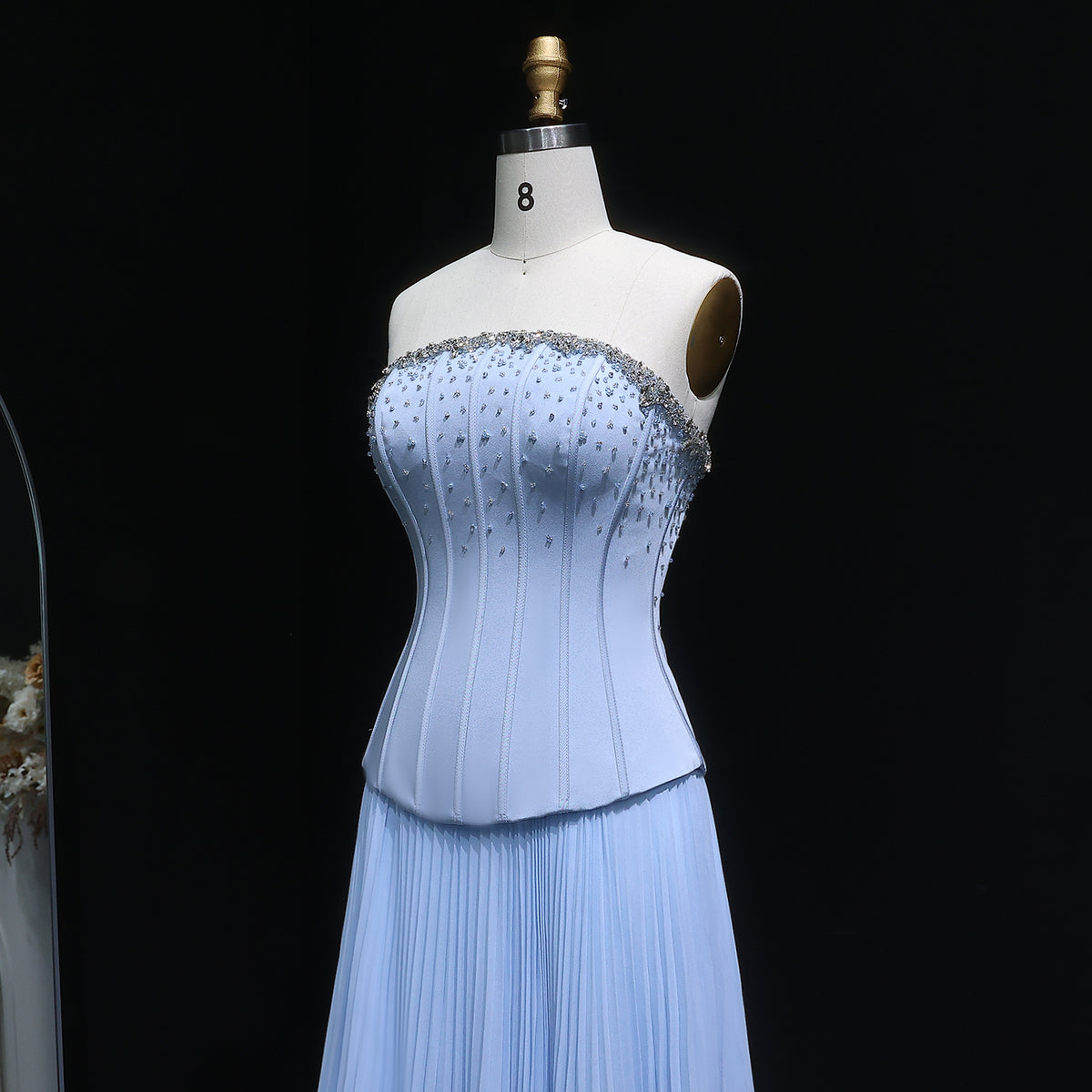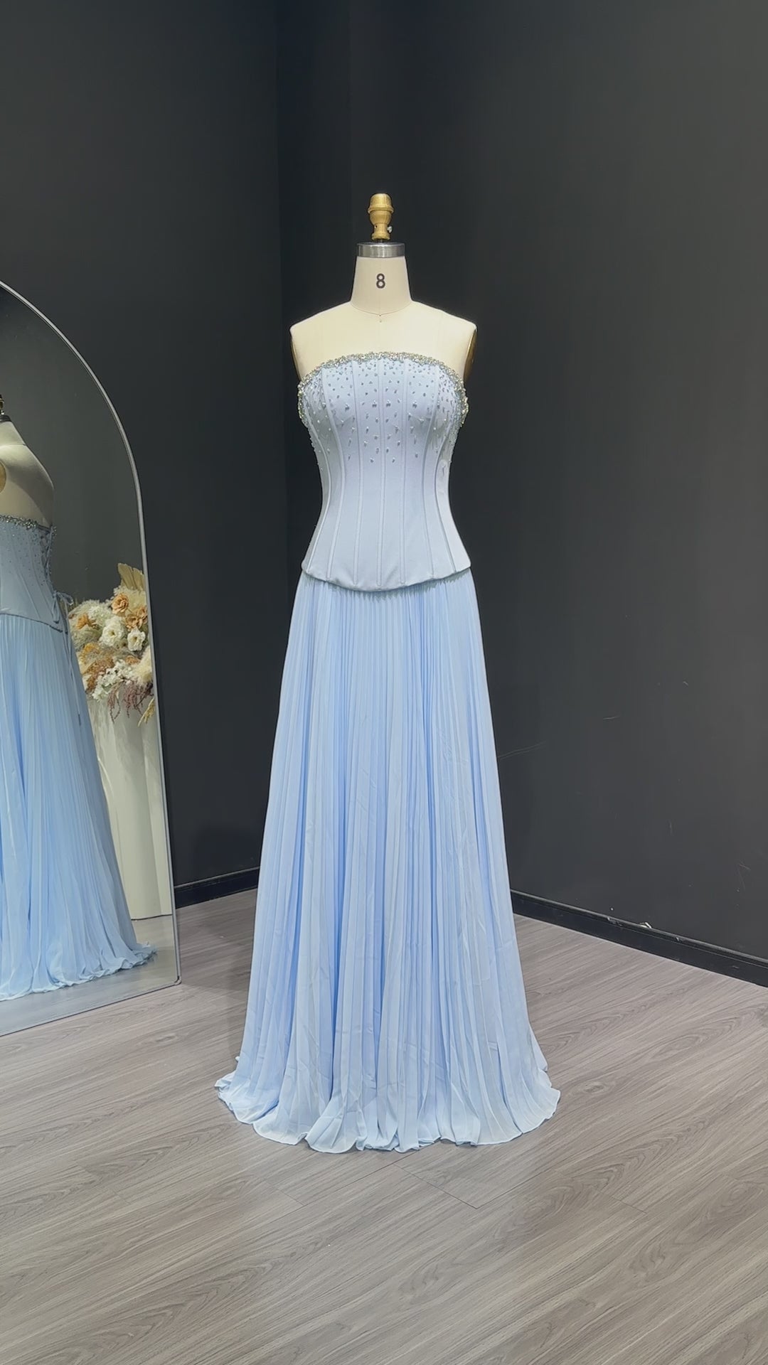 Elevate your evening look with this Elegant Light Blue Crystal Two Pieces Evening Dress SF221. Featuring a delicate light blue hue and shimmering crystal accents, this two-piece set offers a sophisticated silhouette perfect for formal occasions. The combination of elegant design and subtle sparkle enhances your poise, making it an ideal choice for memorable events. Crafted to provide both style and comfort, this dress ensures you stand out with refined grace.