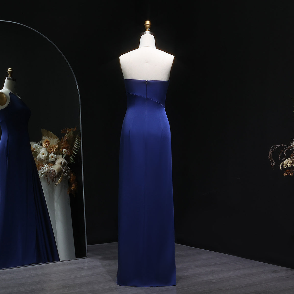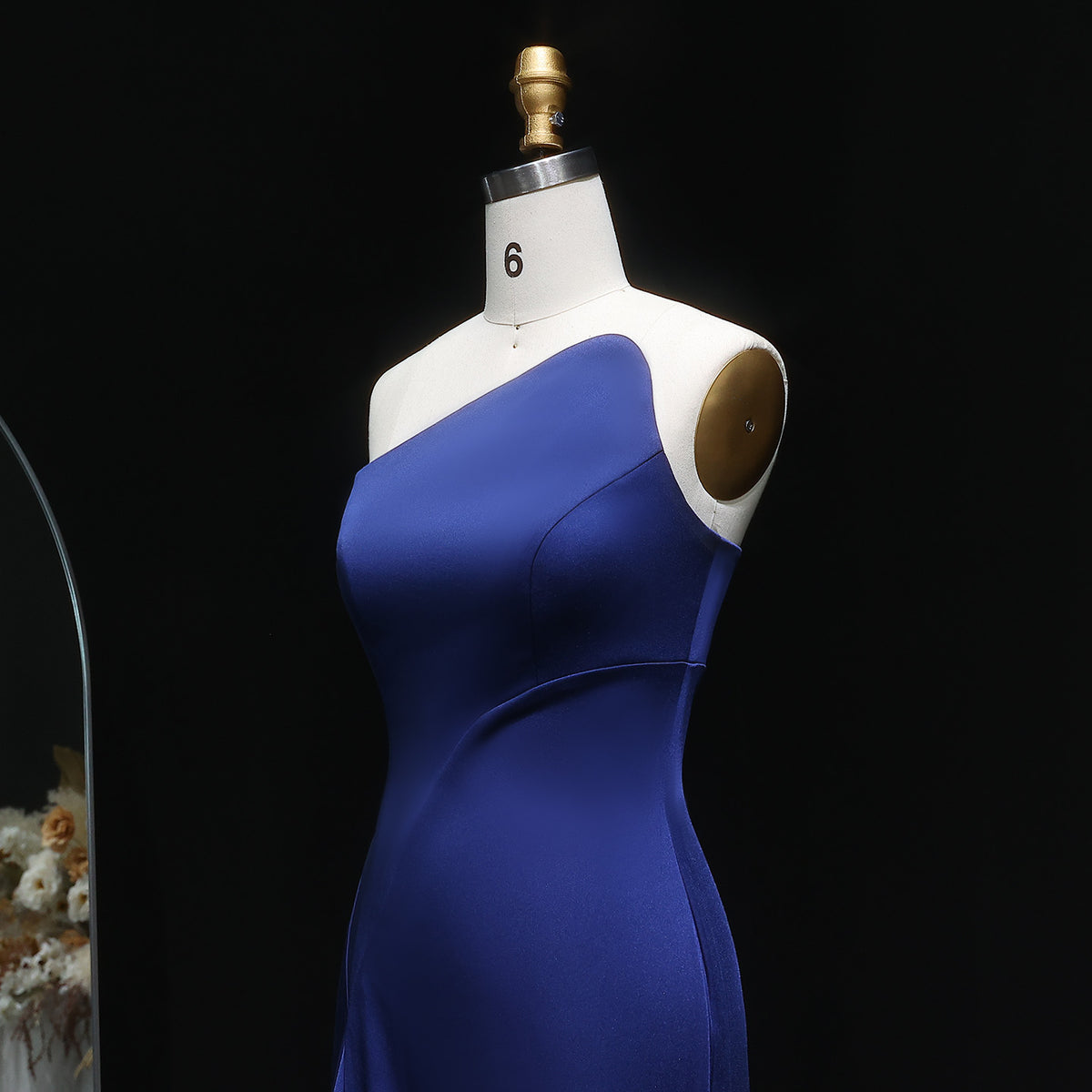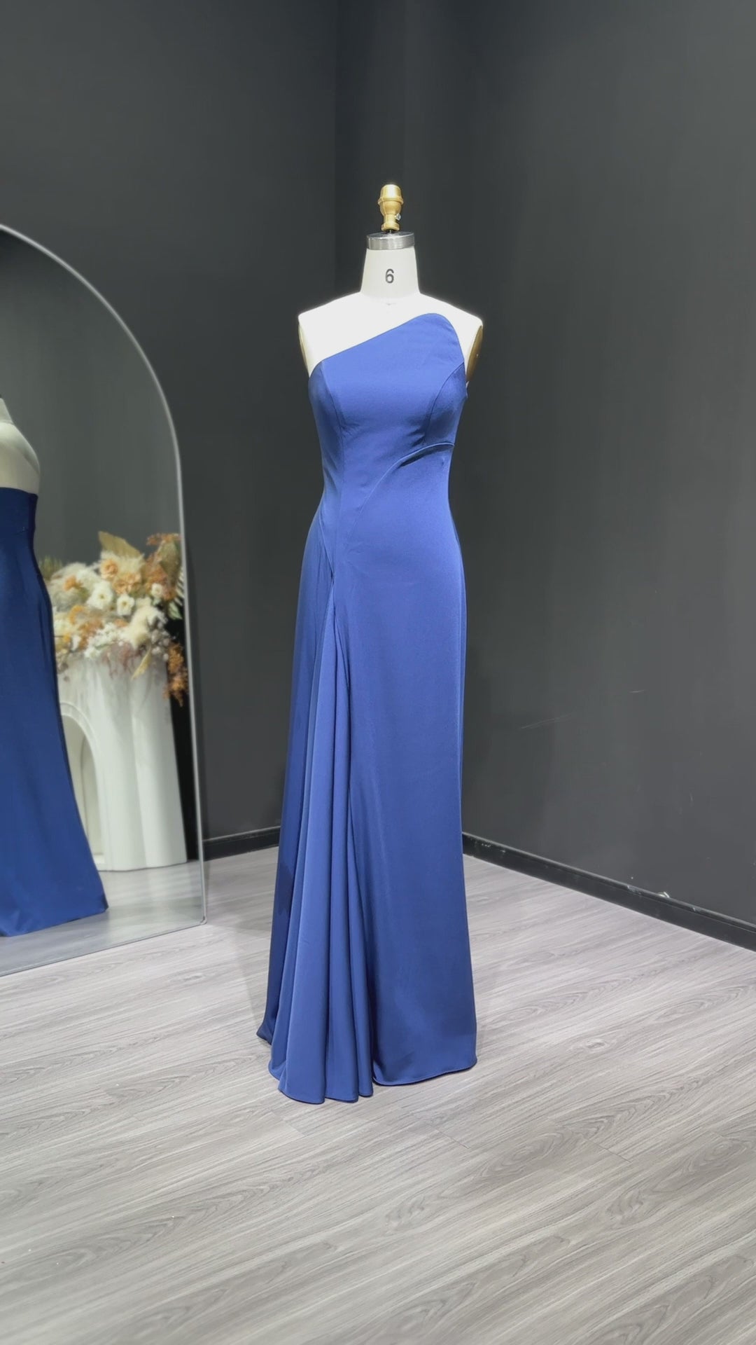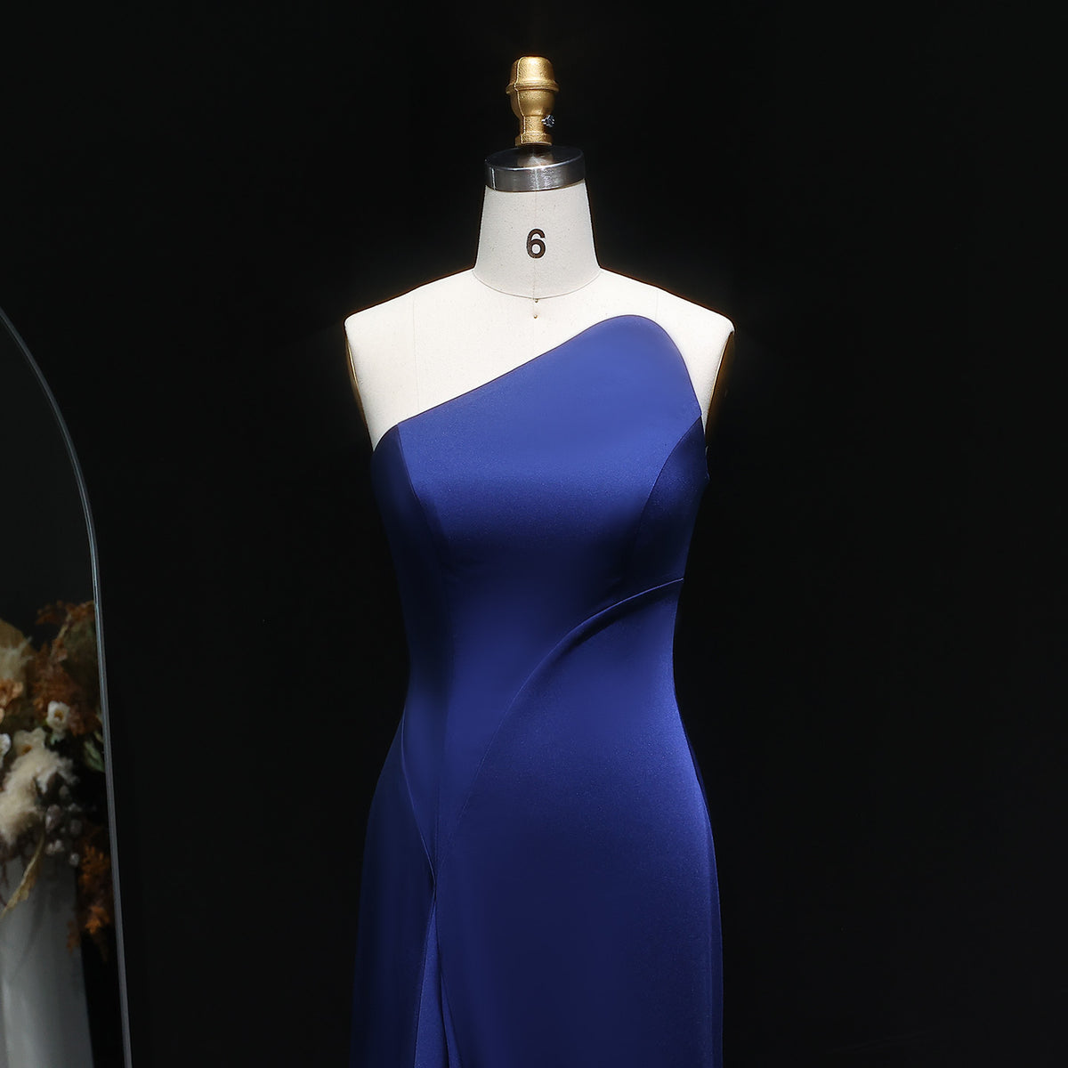 This elegant navy blue evening dress features a sophisticated one-shoulder design that highlights refined style and grace. Crafted with attention to detail, its sleek silhouette offers a flattering fit for formal occasions. Perfect for gala dinners, weddings, or upscale events, this dress combines timeless color with modern tailoring to ensure you stand out with understated elegance.
