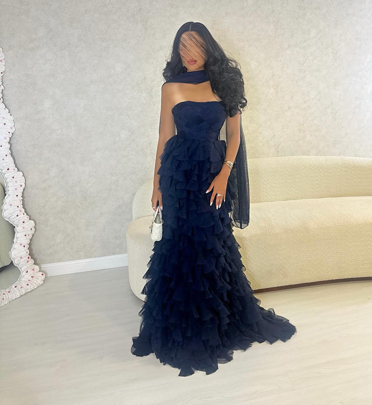 Elevate your evening wardrobe with this Luxury Light Brown Layered Tulle Evening Dress, expertly crafted to combine elegance and comfort. The delicate layered tulle creates a sophisticated silhouette, while the included matching scarf adds versatility for styling. Perfect for formal occasions, this dress offers a refined look that enhances your presence without compromising ease of movement. Its light brown hue brings warmth and subtlety to your ensemble, making it a timeless addition to your collection.