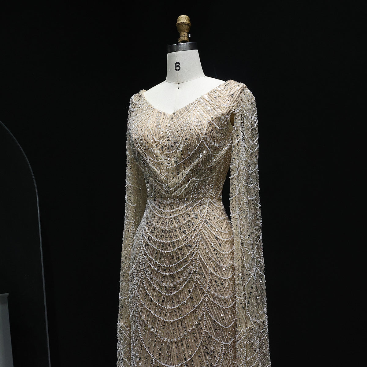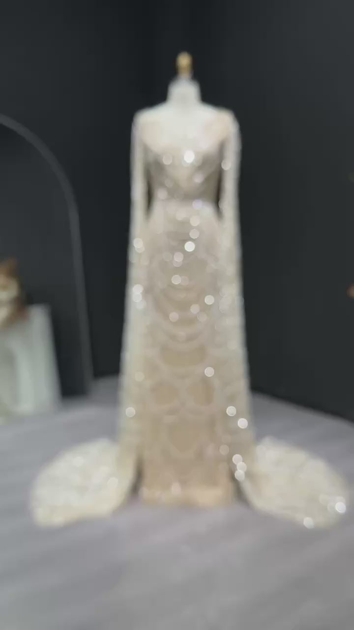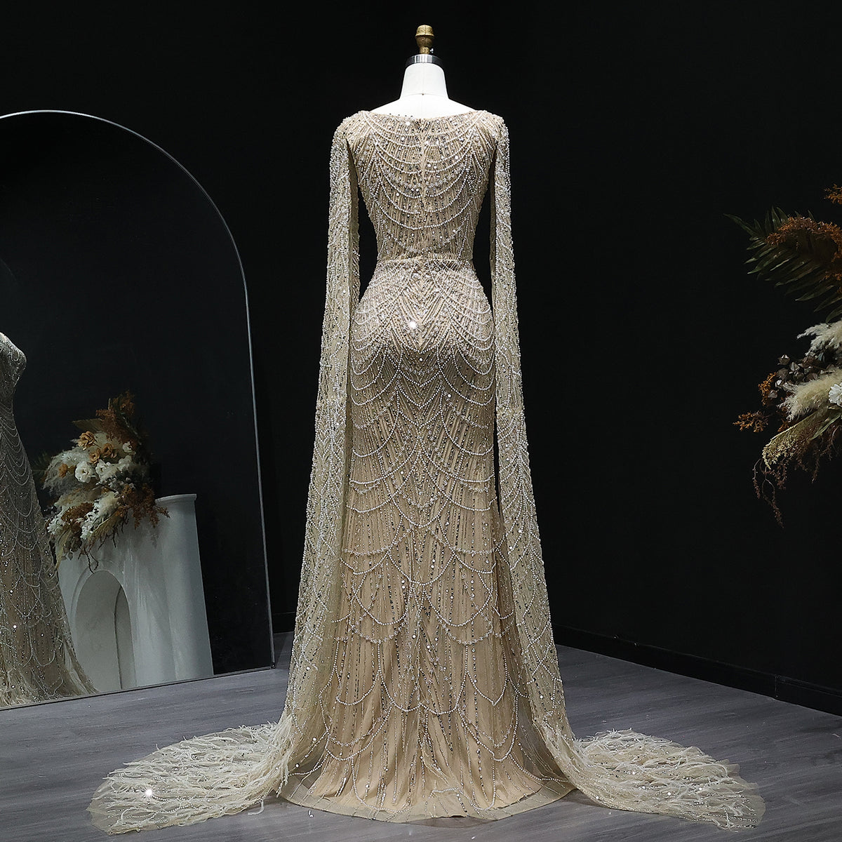 This luxury white feather evening dress with cape sleeves is designed for those who crave extravagance. The mermaid silhouette accentuates your figure, while the feather detailing adds a touch of glamour. Perfect for a formal event or special occasion, this dress will make you feel confident and elegant.