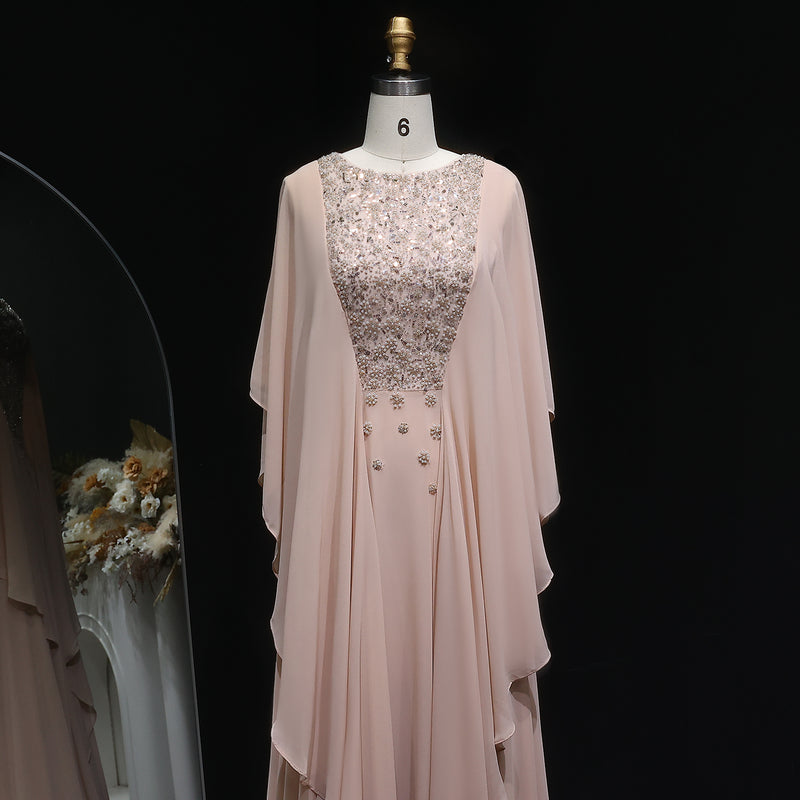 Luxury Crystal Pink Evening Dress with Cape SS393