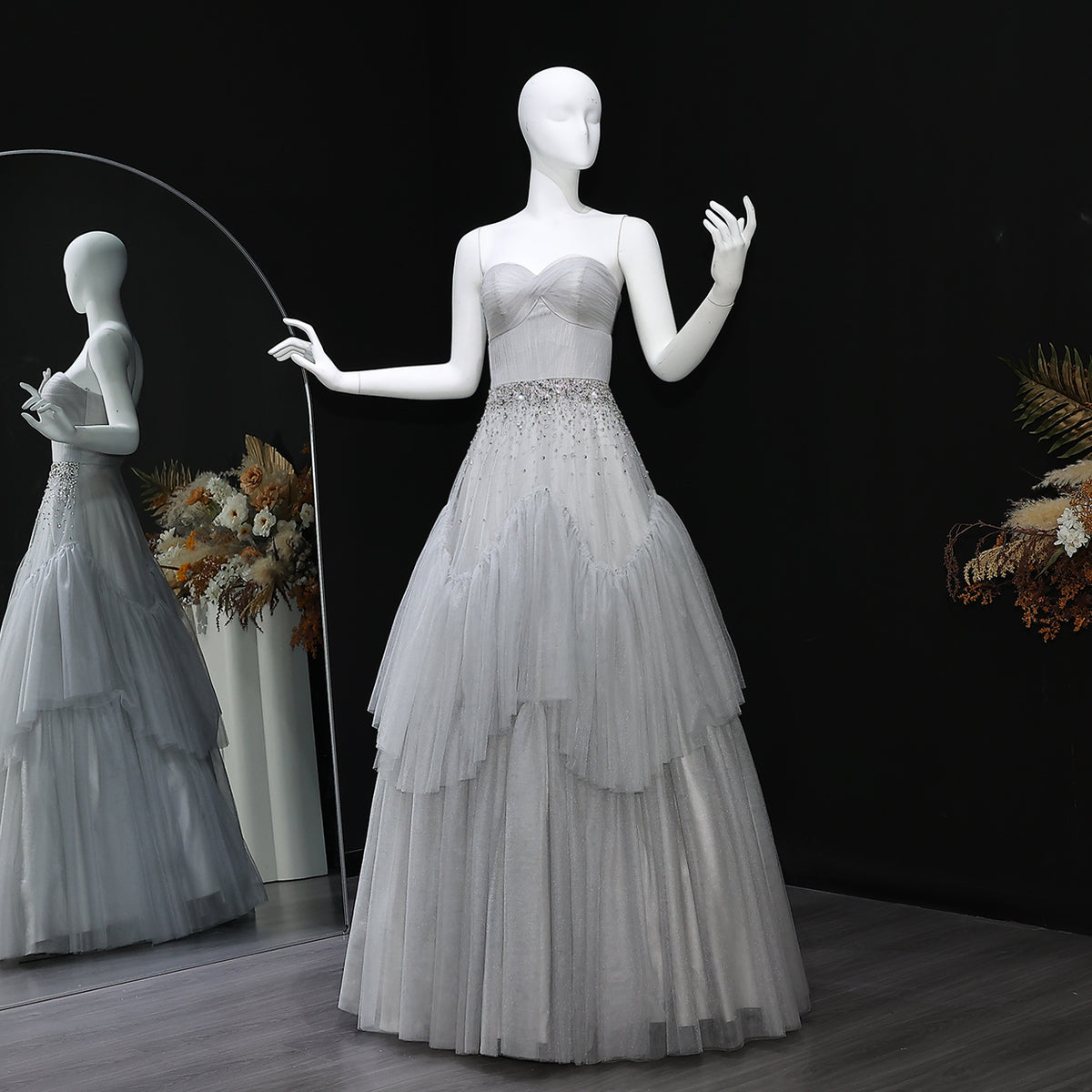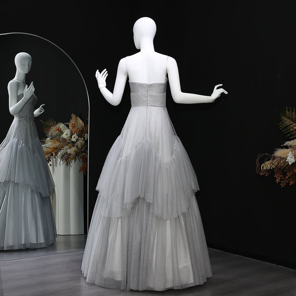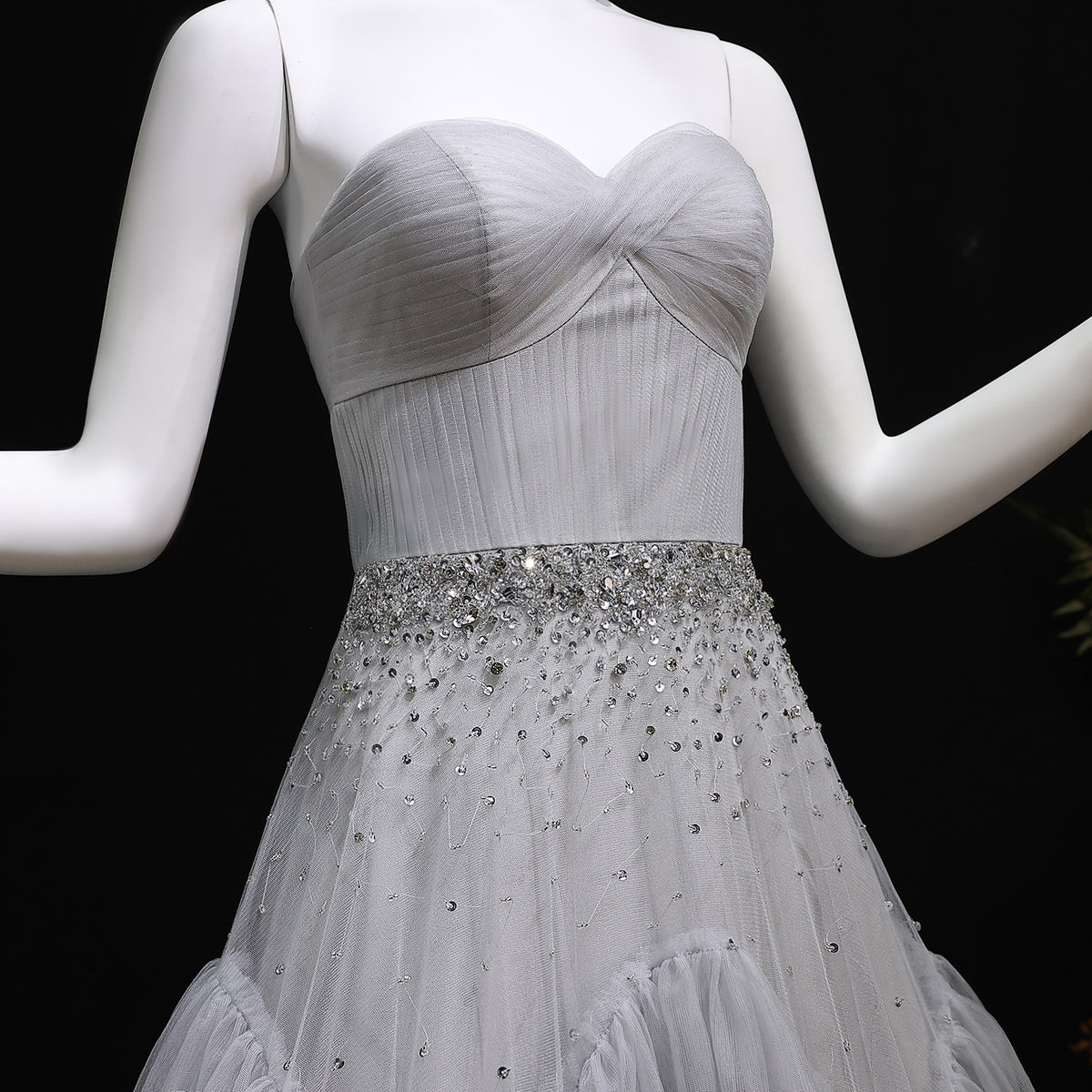 This elegant gray evening dress features delicate spaghetti straps and a flattering sweetheart neckline, designed to enhance your silhouette gracefully. The A-line cut offers a timeless shape that drapes beautifully, making it an ideal choice for formal occasions. Crafted with attention to detail, this dress combines sophistication with comfort for a refined, expert look.