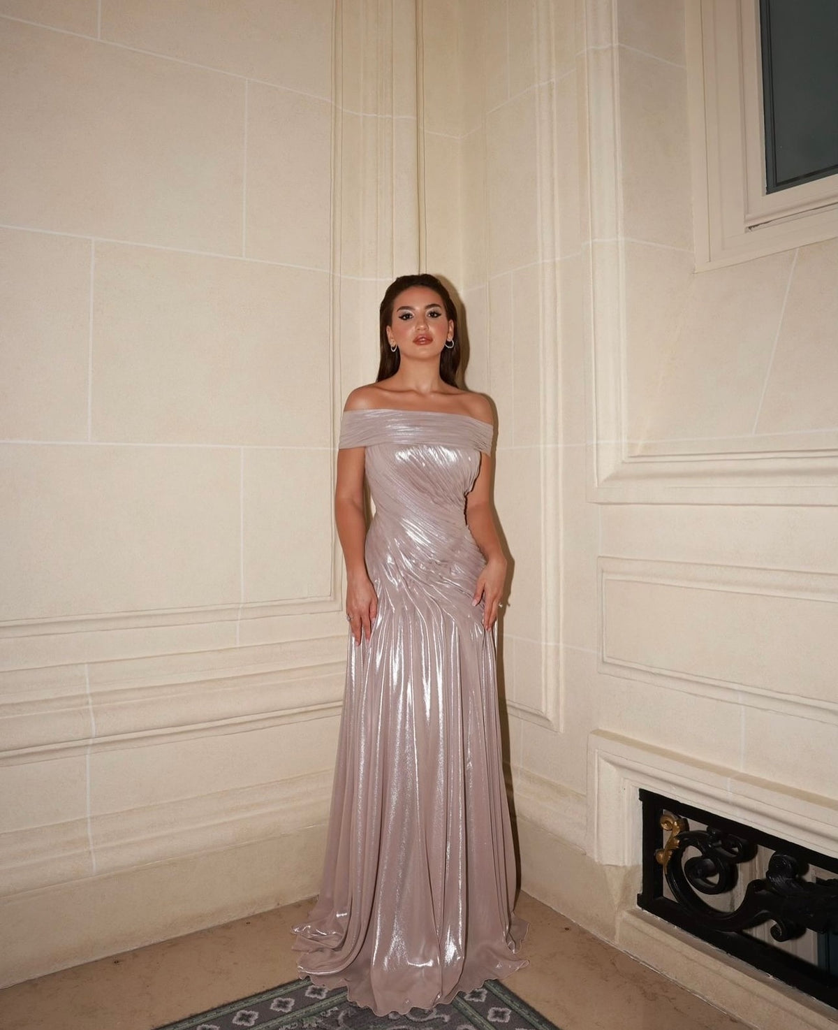 Elegant Off Shoulder Pleated Evening Dress SF392