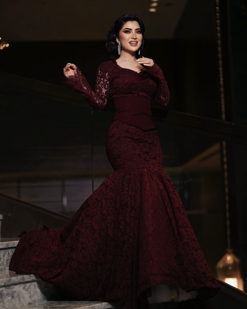 Sexy Burgundy Long Sleeves Mermaid Evening Dress SF110