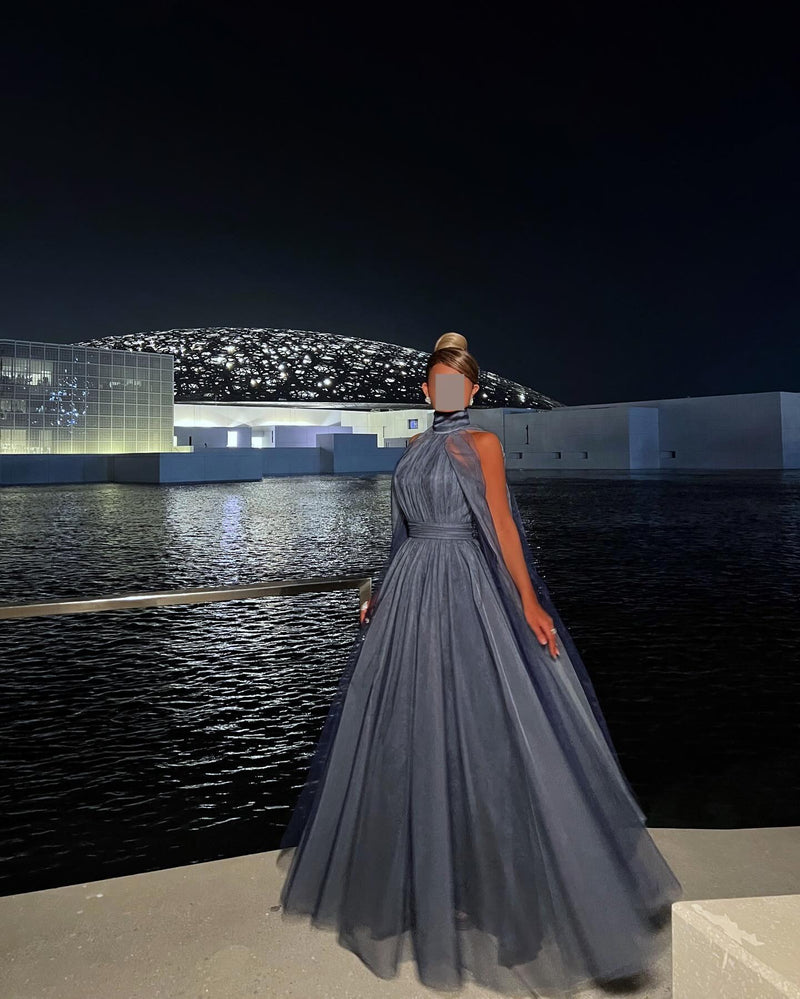 Elegant Blue High Neck A-Line Evening Dress SF117