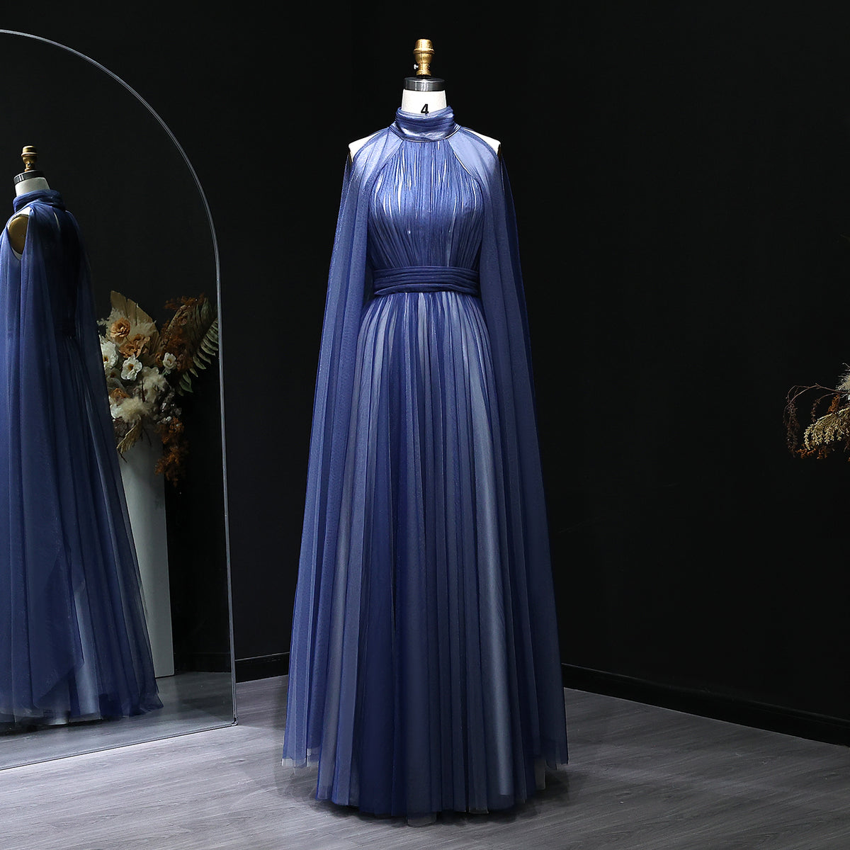 Expertly designed with an elegant high neck and A-line silhouette, this blue evening dress SF117 exudes sophistication. Made with the finest materials, it offers a flawless fit and timeless style for any special occasion. Elevate your wardrobe with this stunning piece and make a lasting impression.