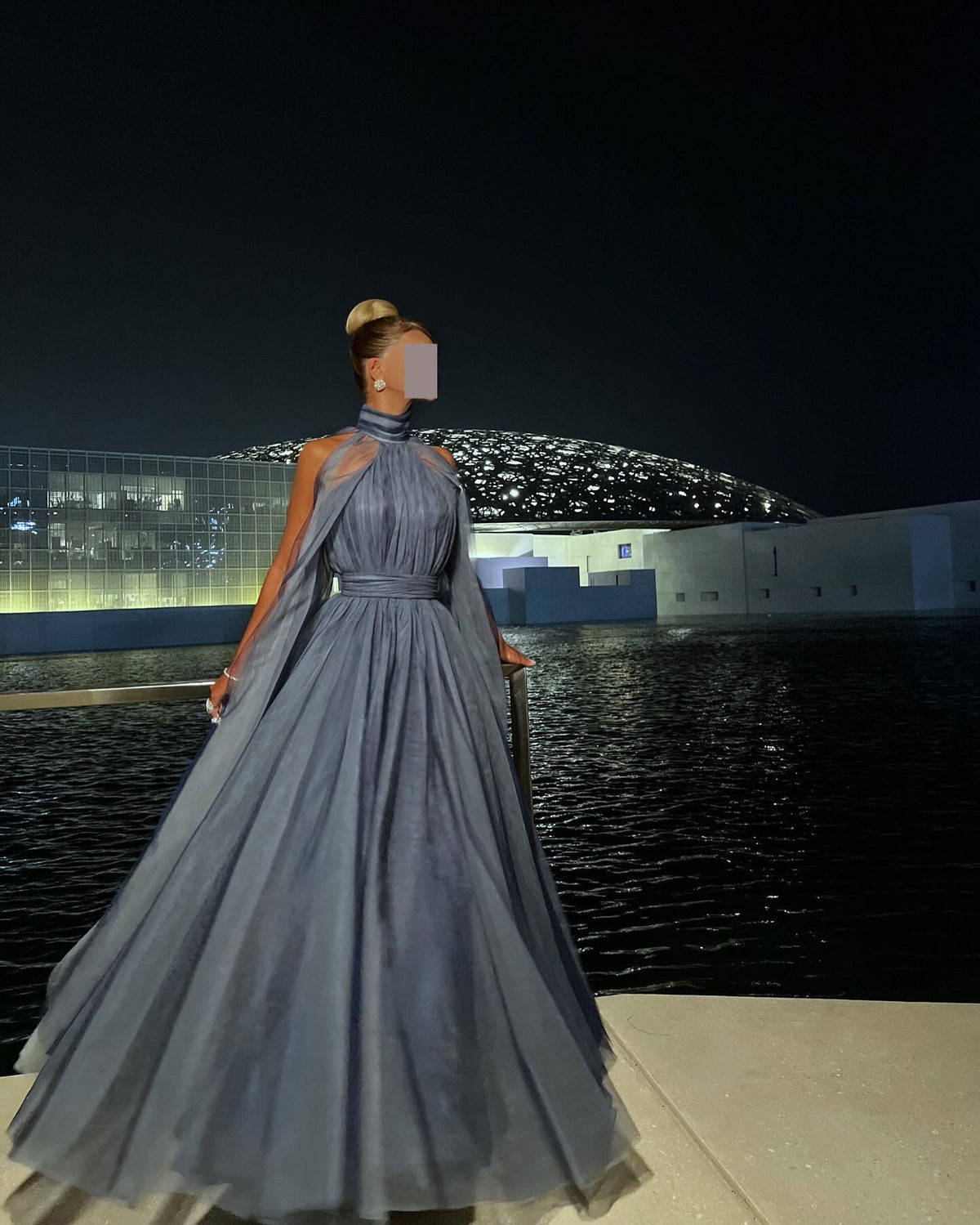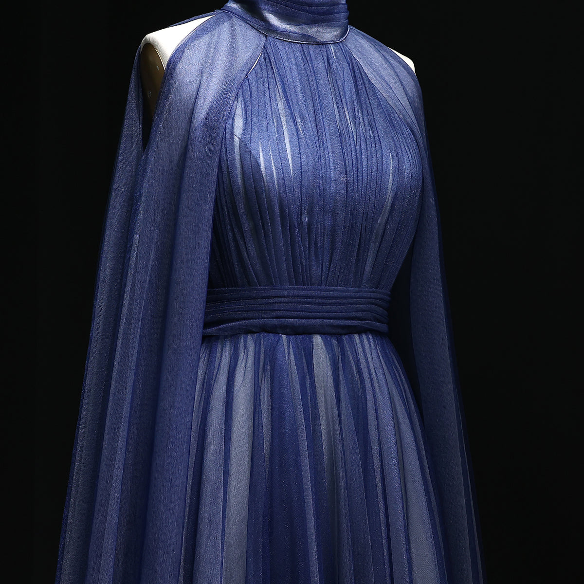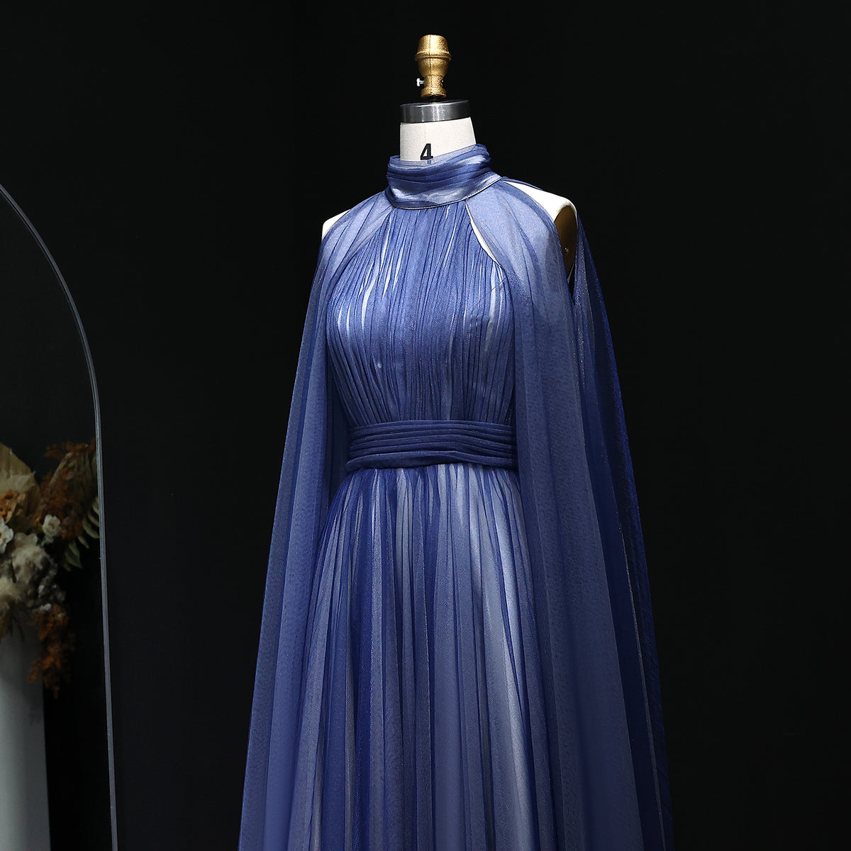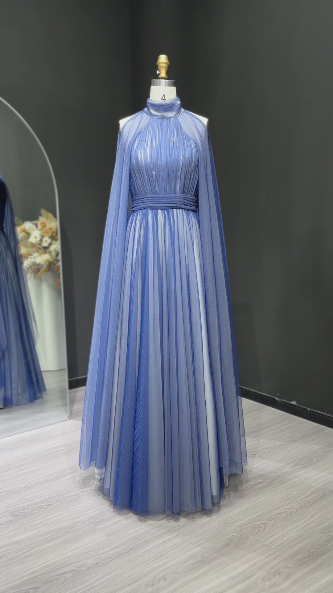 Elegant Blue High Neck A-Line Evening Dress SF117