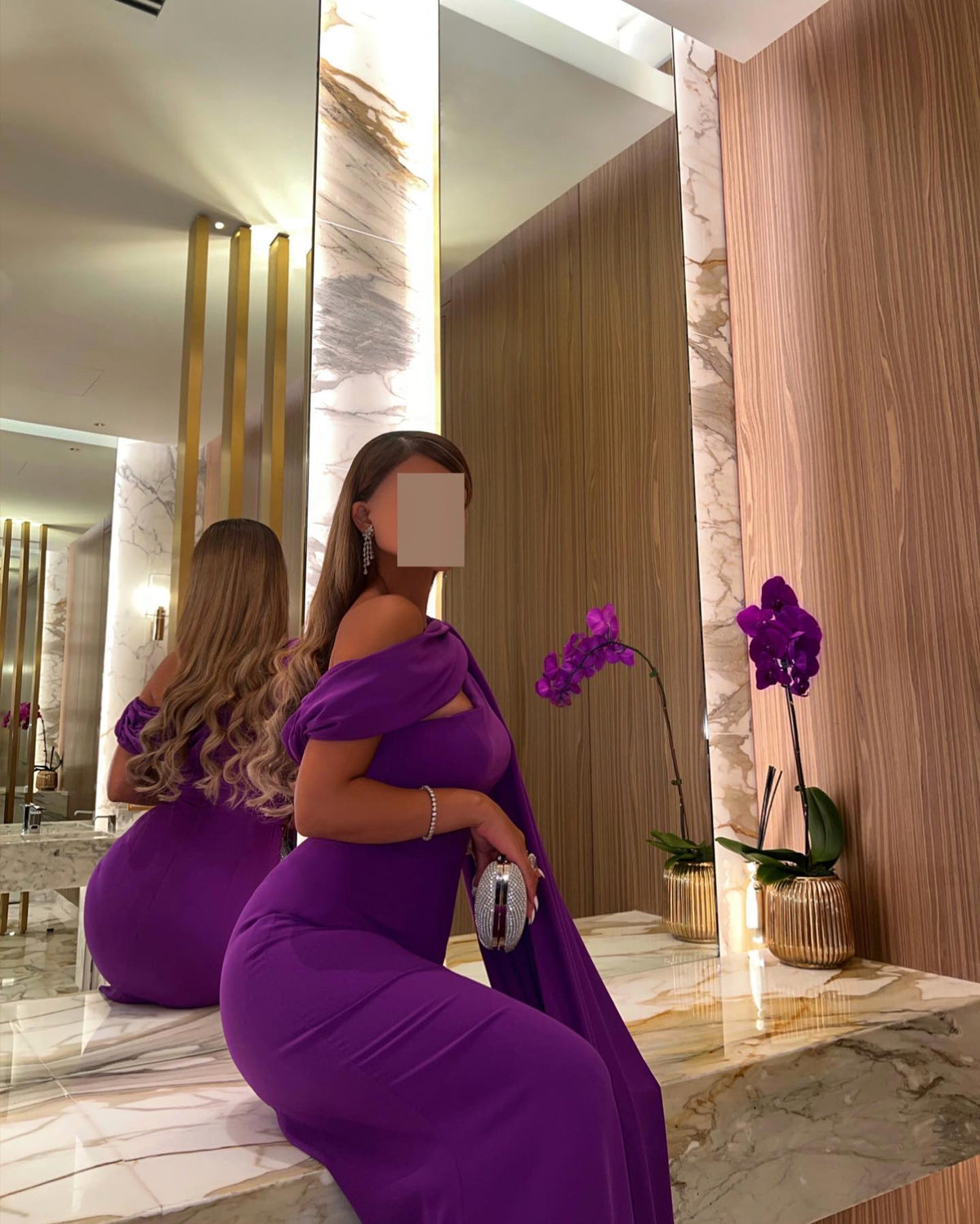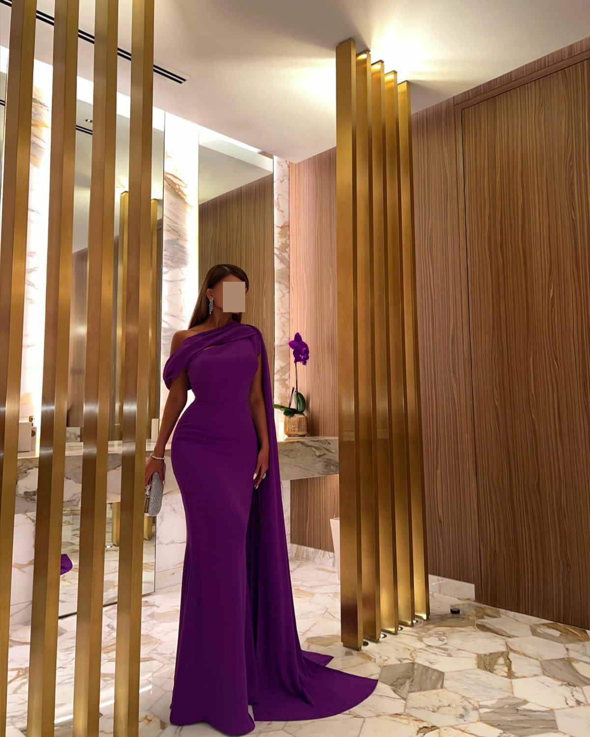 This elegant purple mermaid evening dress features cape sleeves that add a touch of sophistication to its already sleek design. Made with high-quality materials and expert craftsmanship, this dress is perfect for formal events and guarantees a flattering fit. Make a statement and feel confident in this stunning dress.