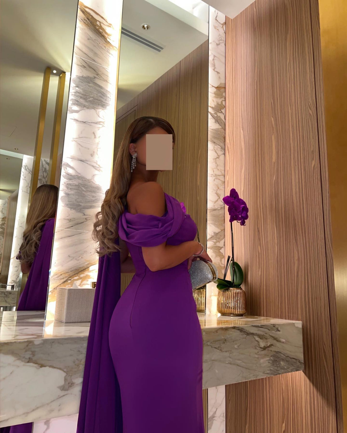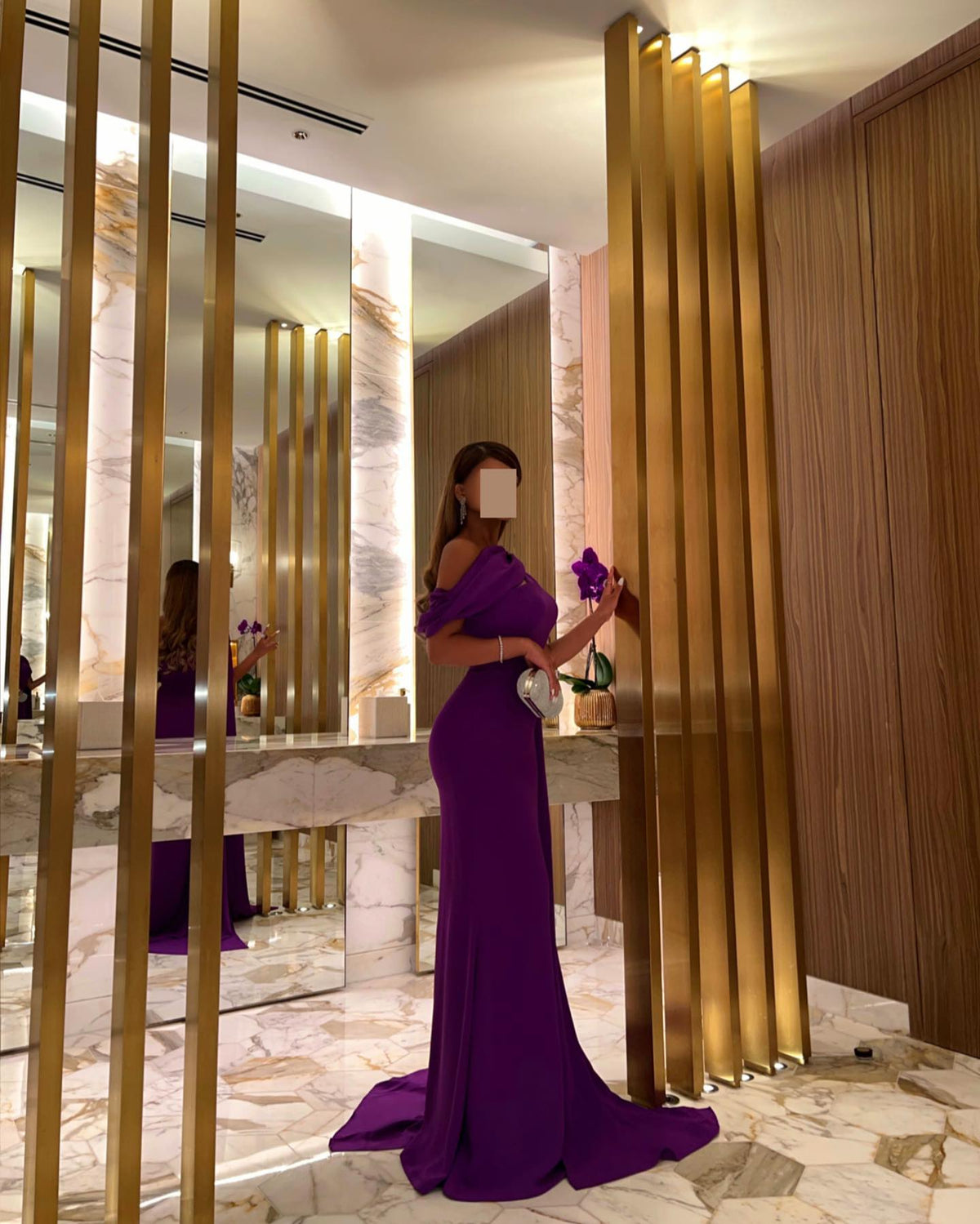 Elegant Purple Mermaid Evening Dress with Cape Sleeve SF112