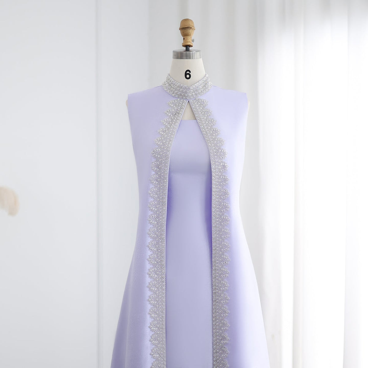 Luxury Rhinestone Lilac Kaftan Evening Dress with Cape SS276