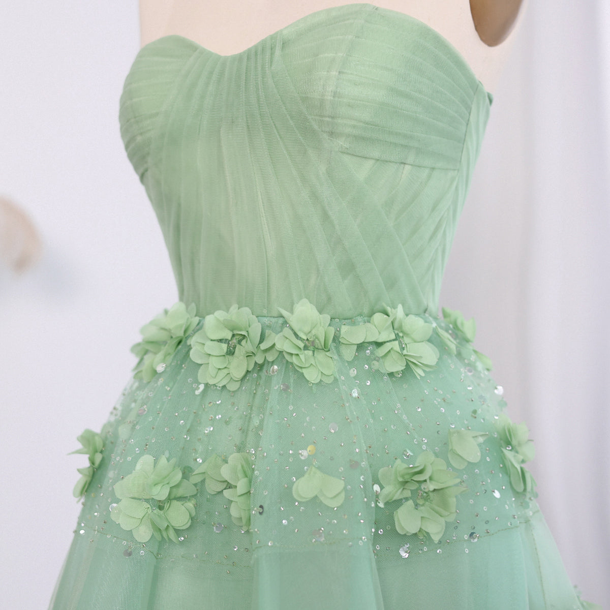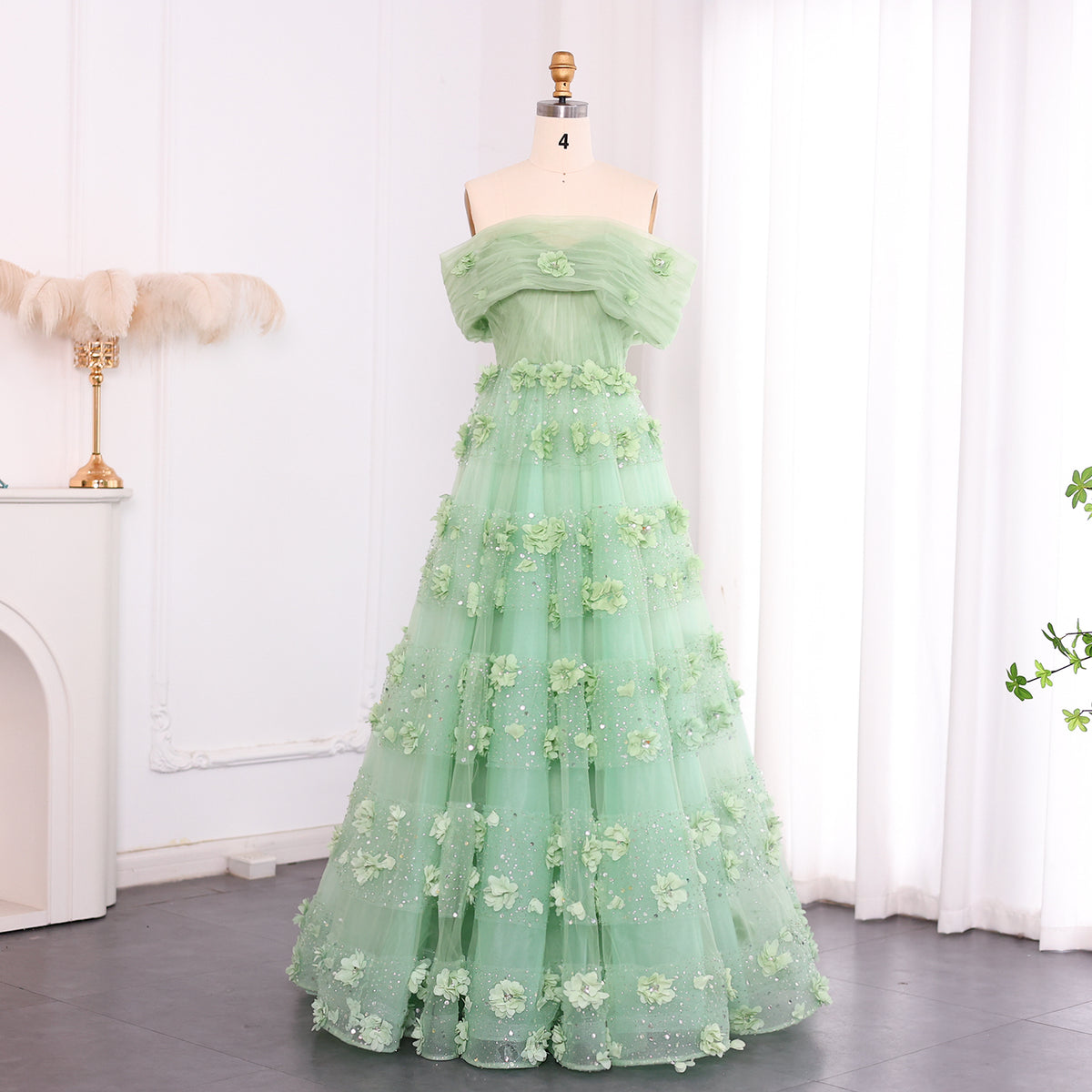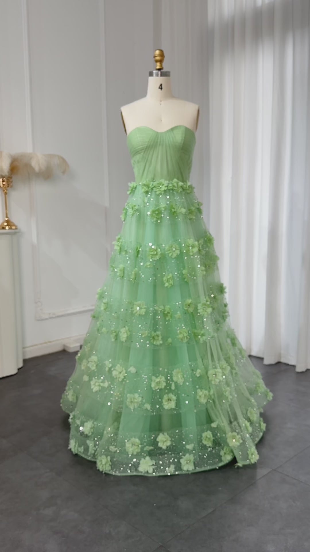 Luxury Sage Green 3D Flowers Sweetheart Evening Dress with Cape SS346