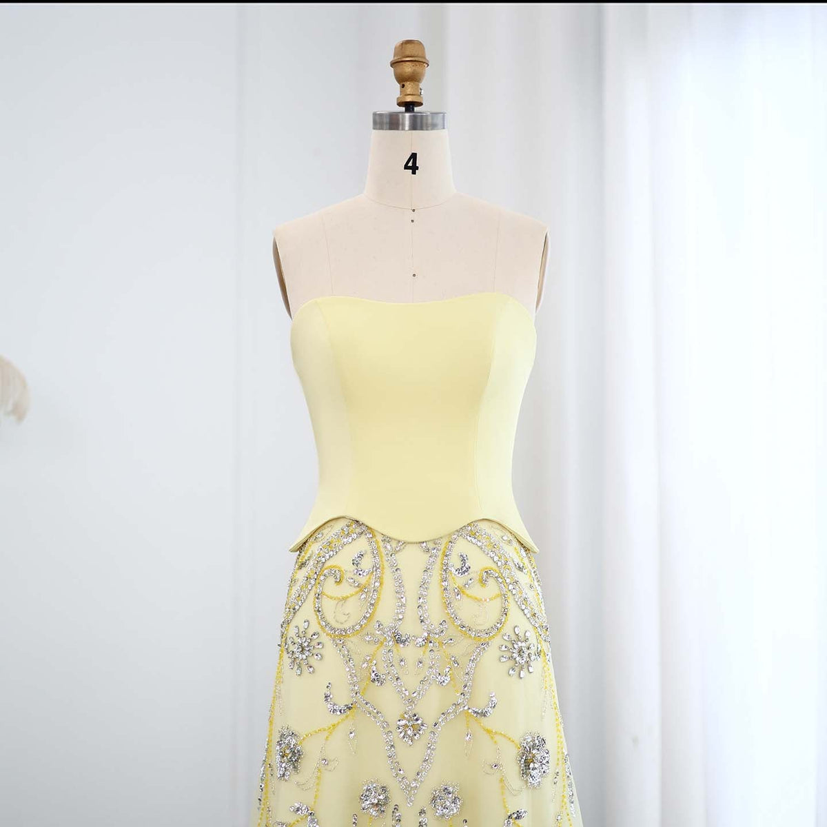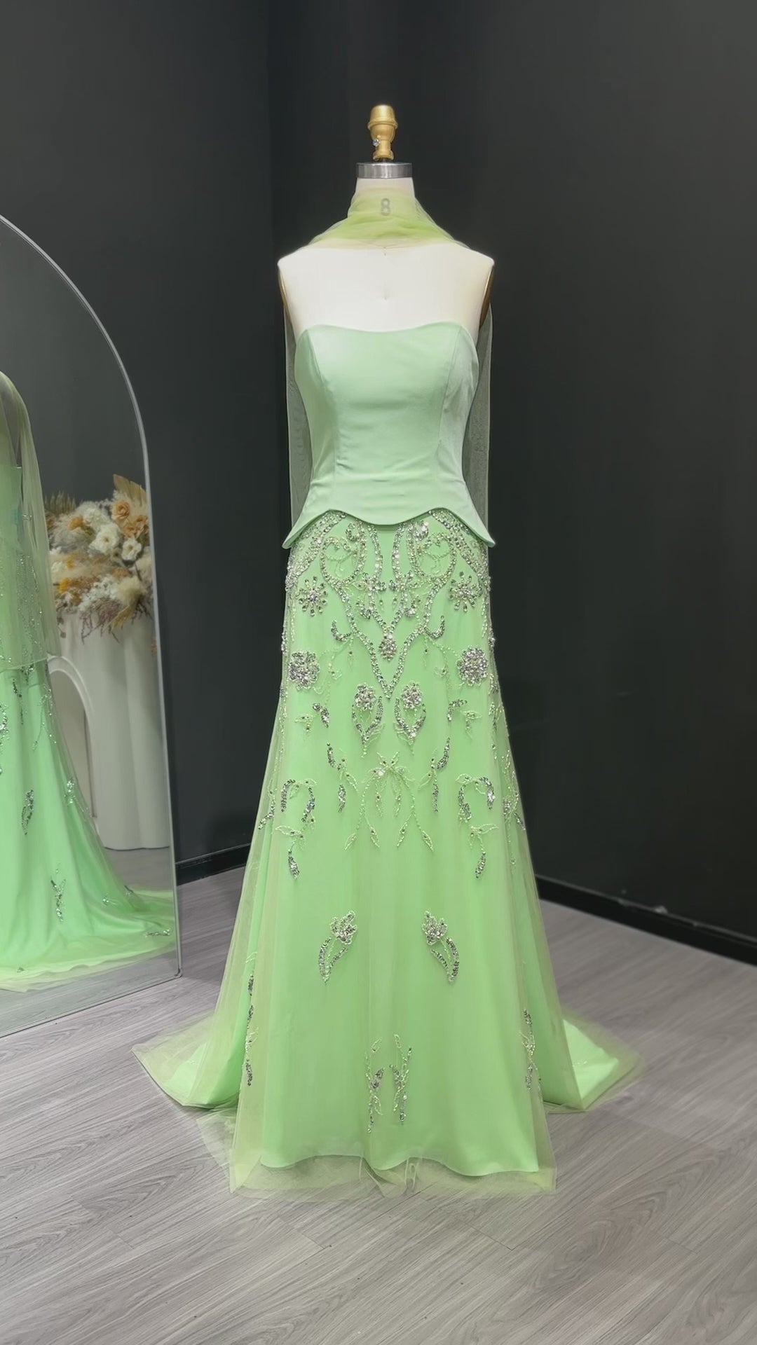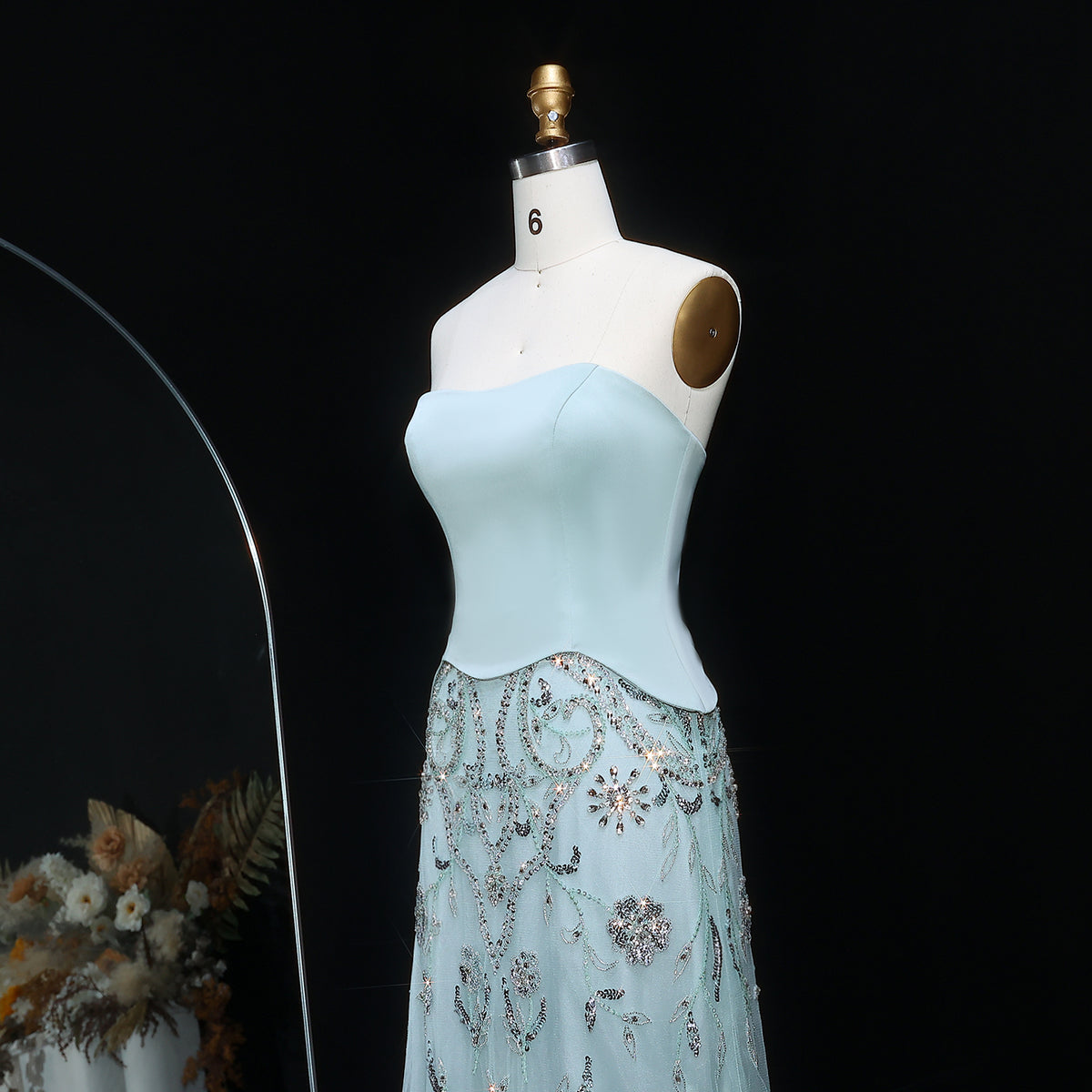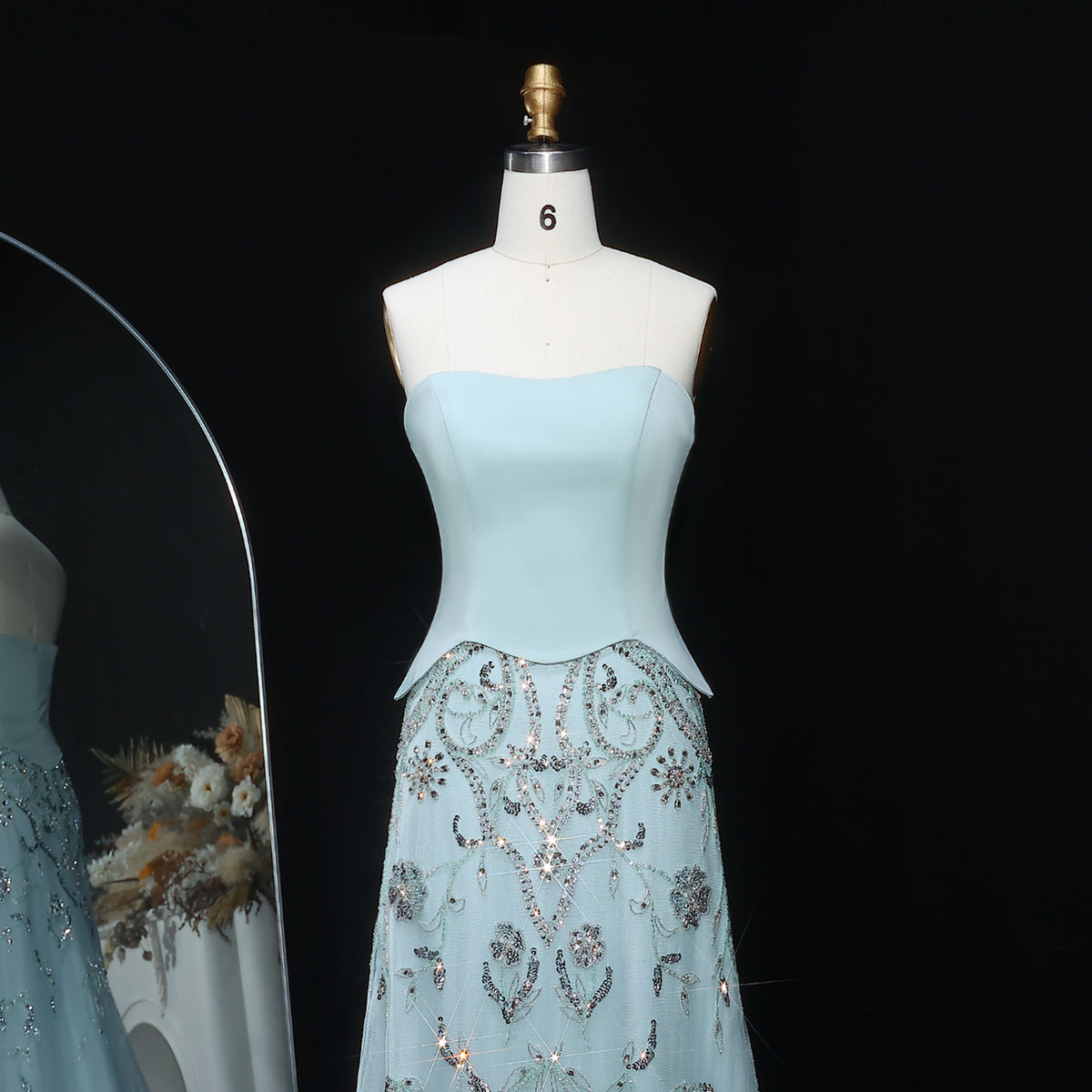 Elevate your evening look with our Luxury Sage Green Strapless Evening Dress SS254. Crafted with superior quality and attention to detail, this dress features a stunning sage green color and a flattering strapless design. Make a statement and turn heads at your next event with this luxurious dress!