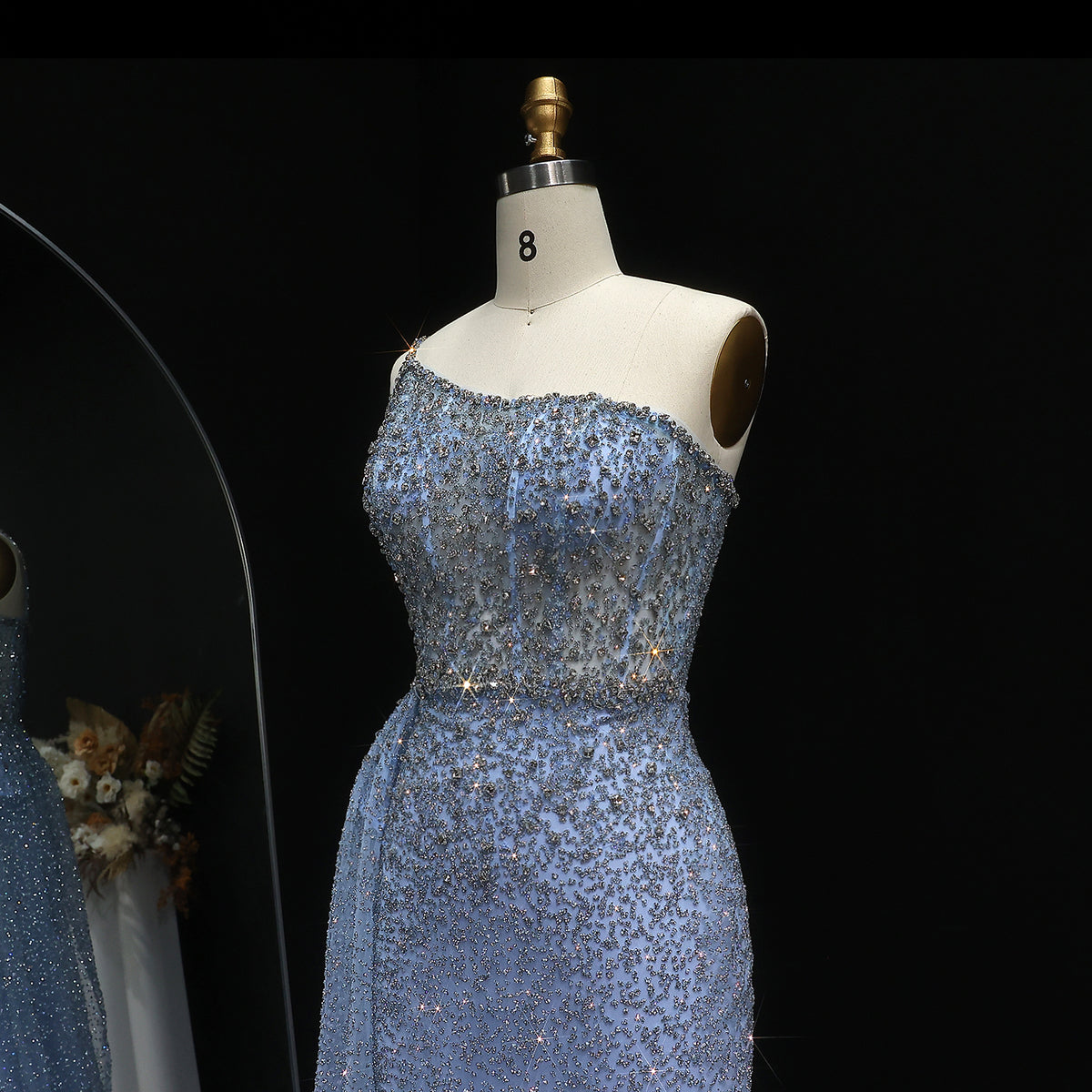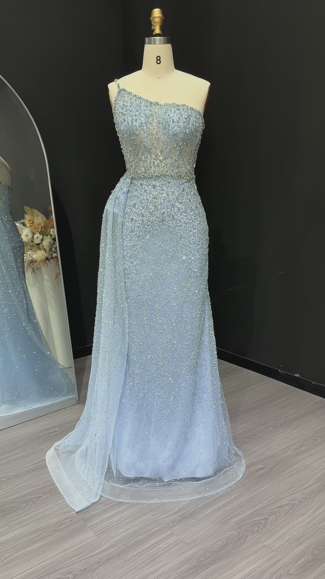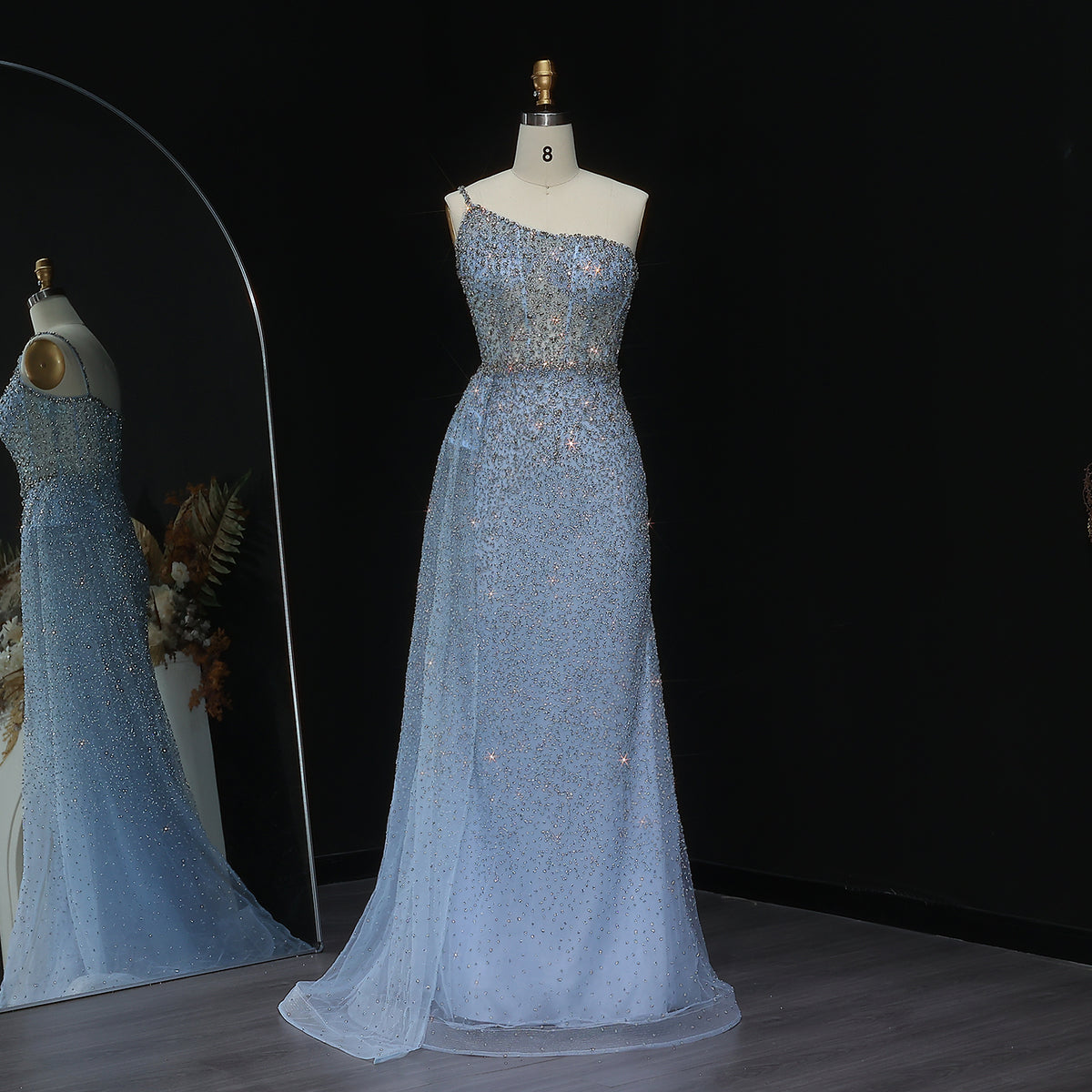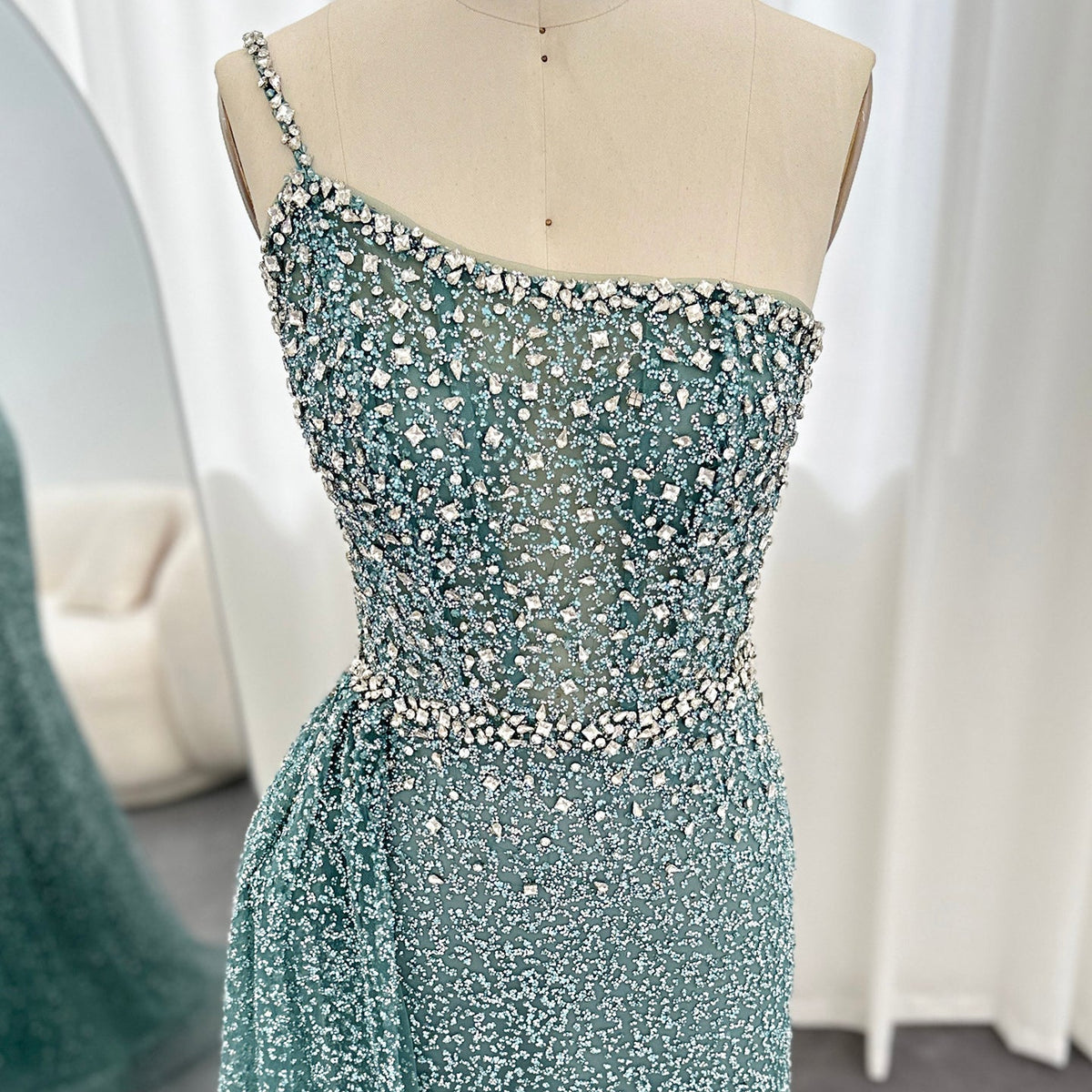 Sparkly Crystal Turquoise One Shoulder Evening Dress SS698