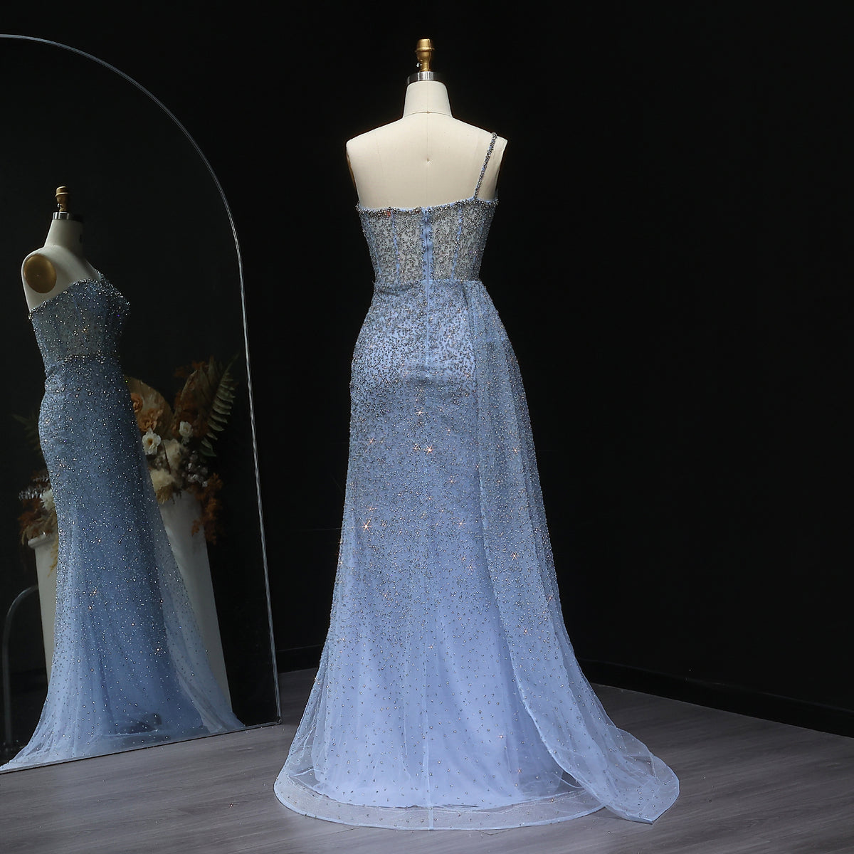 Elevate your evening look with this stunning Sparkly Crystal Turquoise One Shoulder Evening Dress SS698. The striking one-shoulder design and sparkling crystal accents will make you stand out from the crowd. Perfect for special occasions and events, this dress is sure to make you feel confident and beautiful.