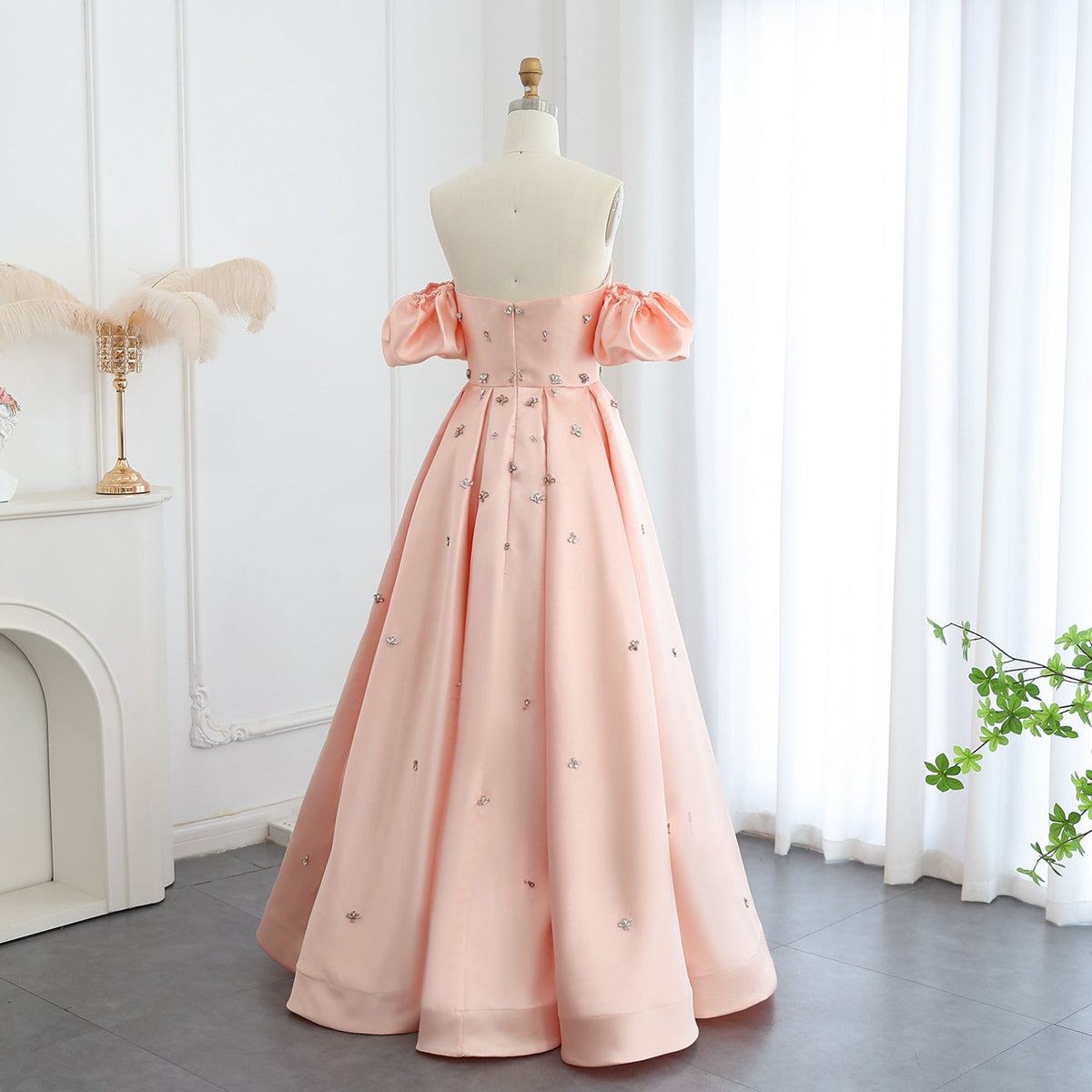 Step into elegance with the Sharon Said Arabic Women Blush Pink Satin Dubai Evening Dresses! Featuring cap sleeves and crystal detailing, these gowns will add the perfect touch of glamour to any wedding or party. Made with high quality satin, they offer both comfort and style for a flawless look.