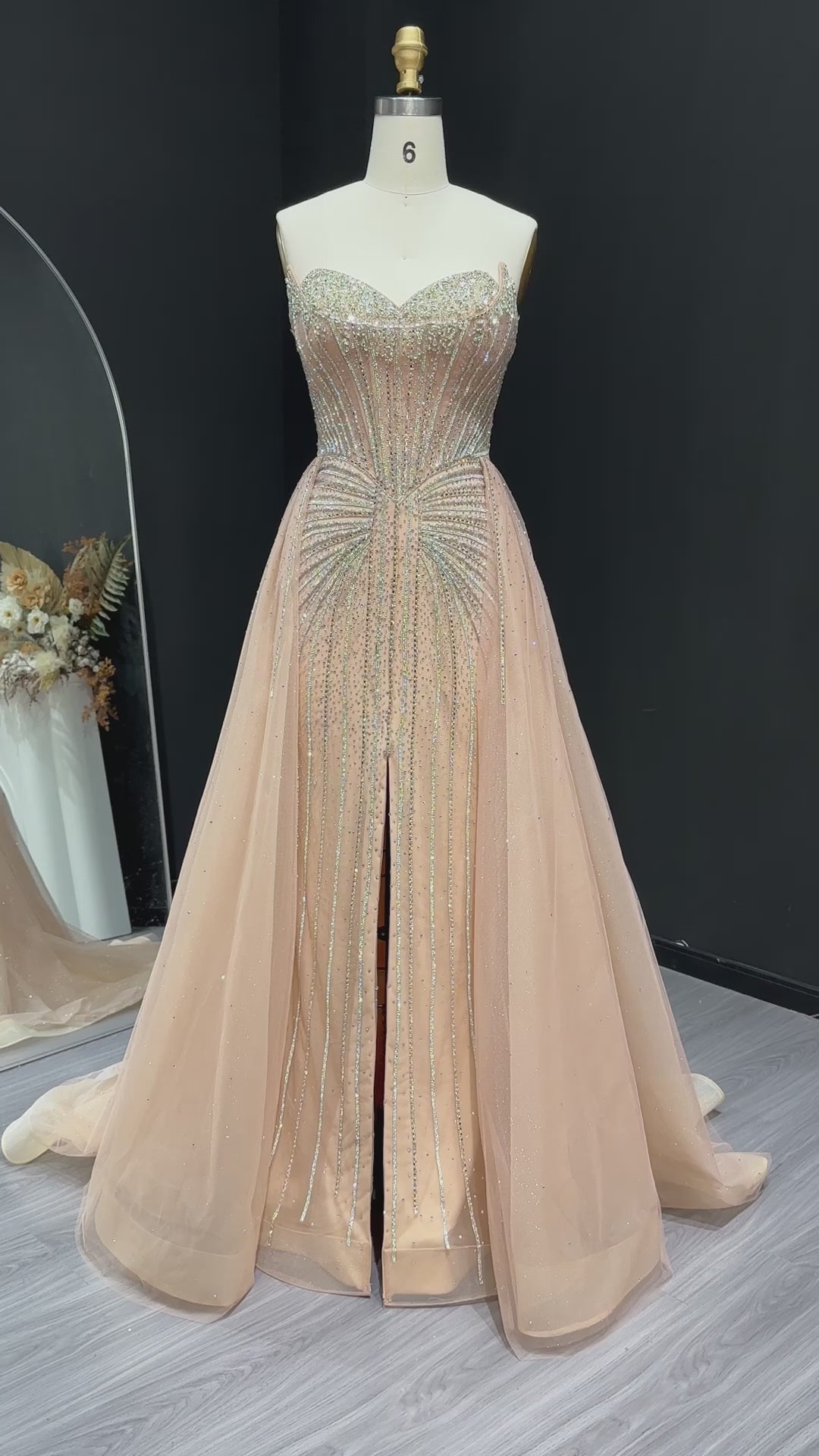 Luxury Beaded Champagne Evening Dress with Overskirt SS360