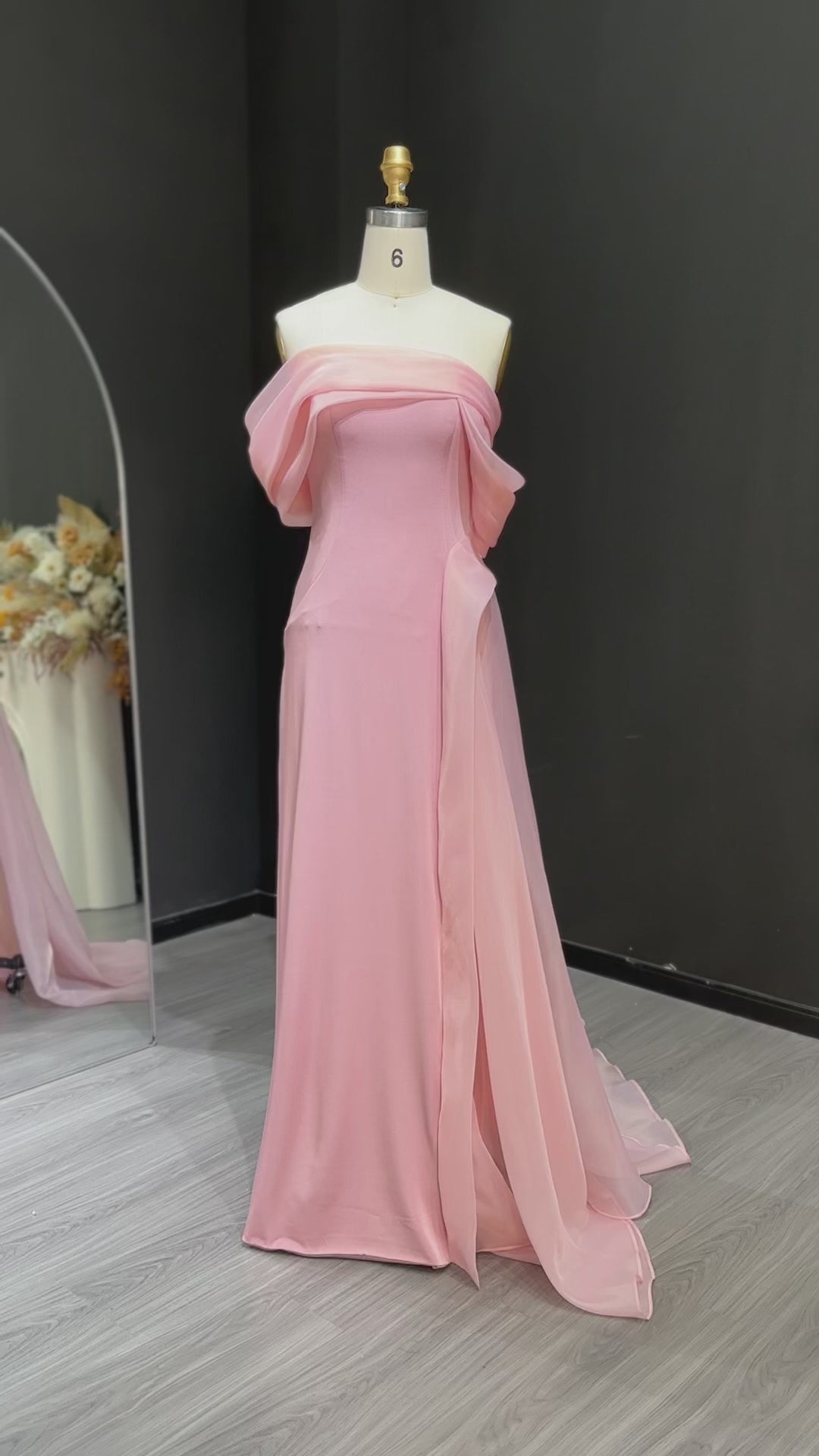 Elegant Pink Off Shoulder Evening Dress with Overskirt SF370