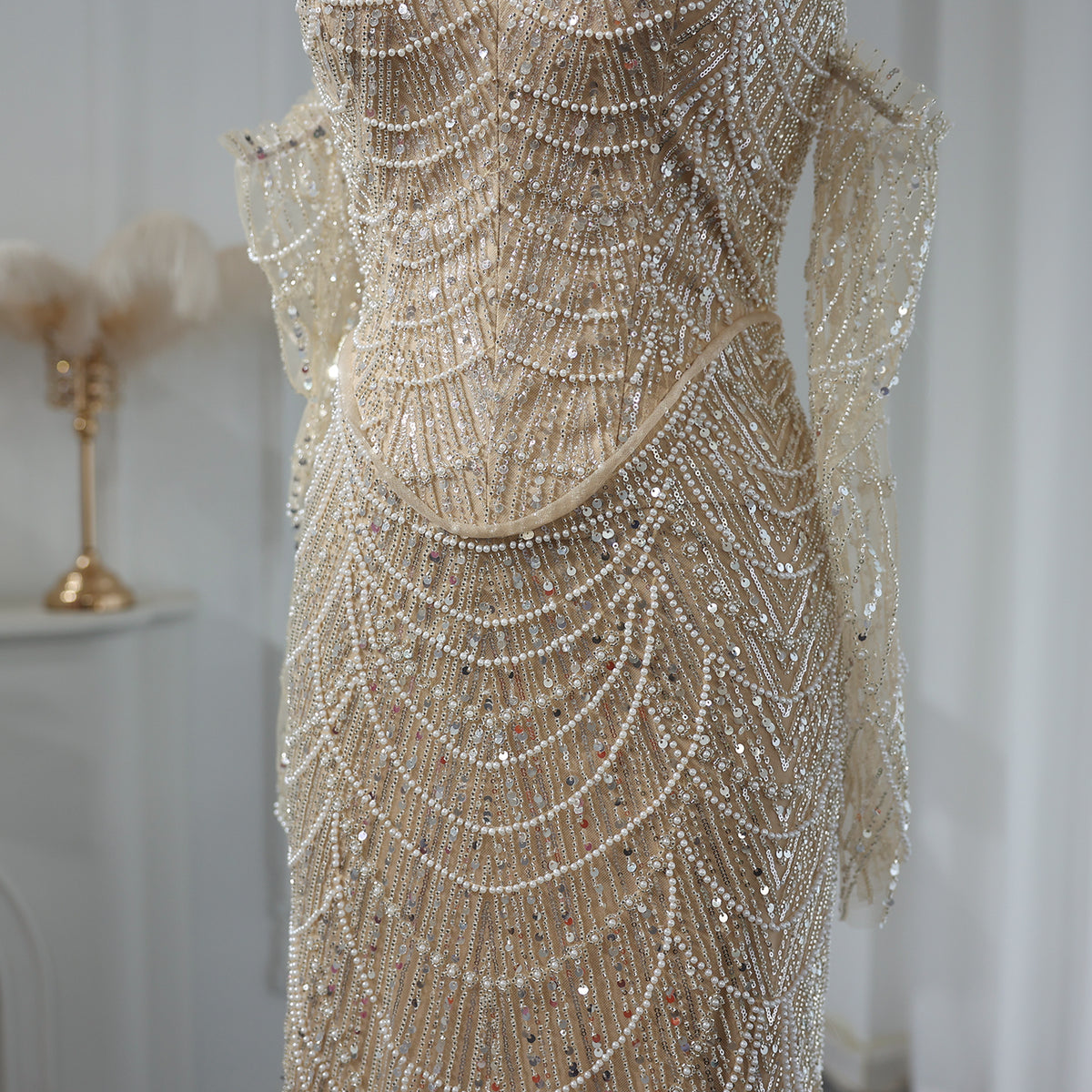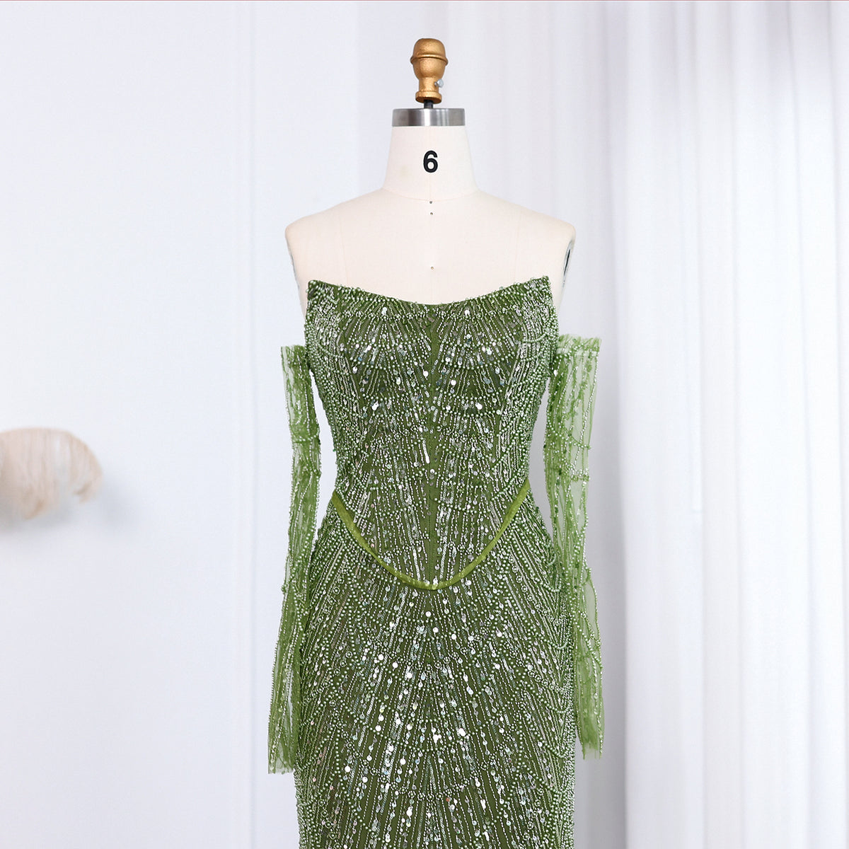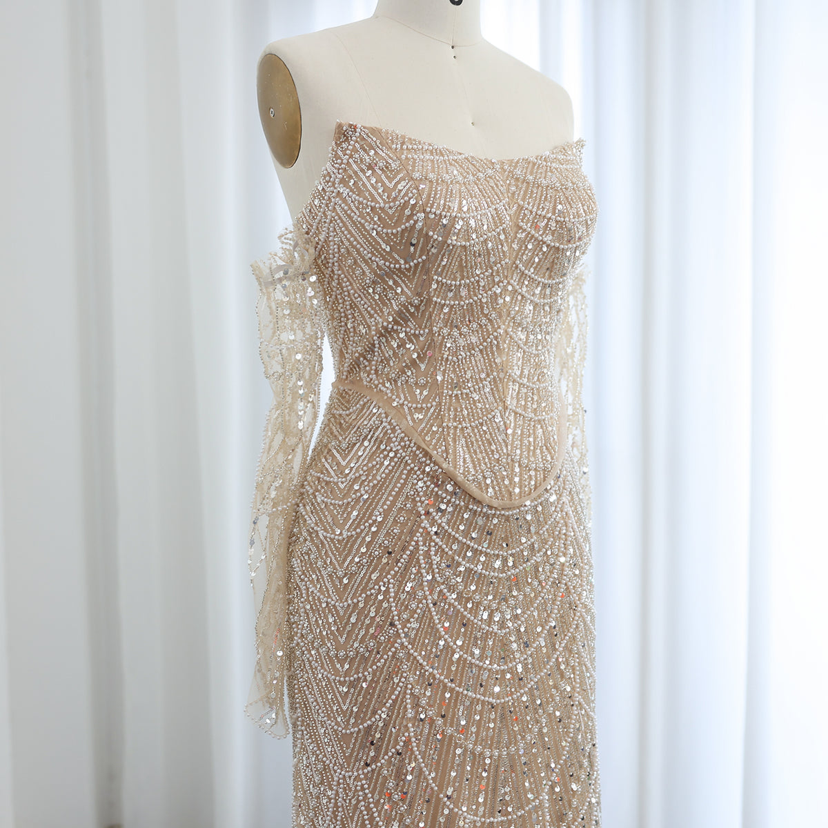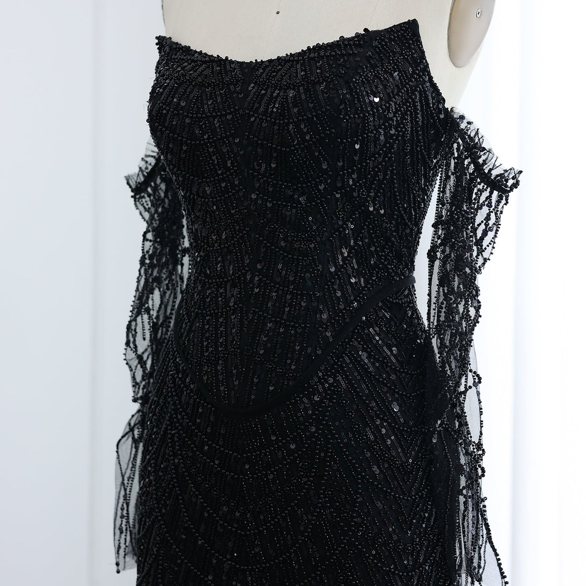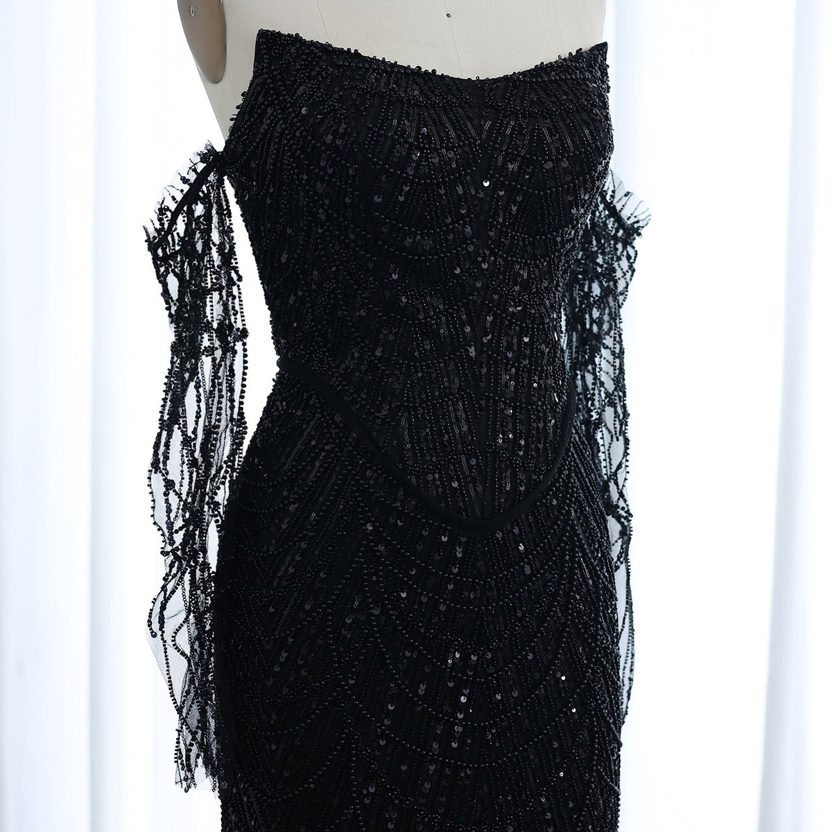 Luxury Beaded Black Strapless Evening Dress with Sleeves SS685