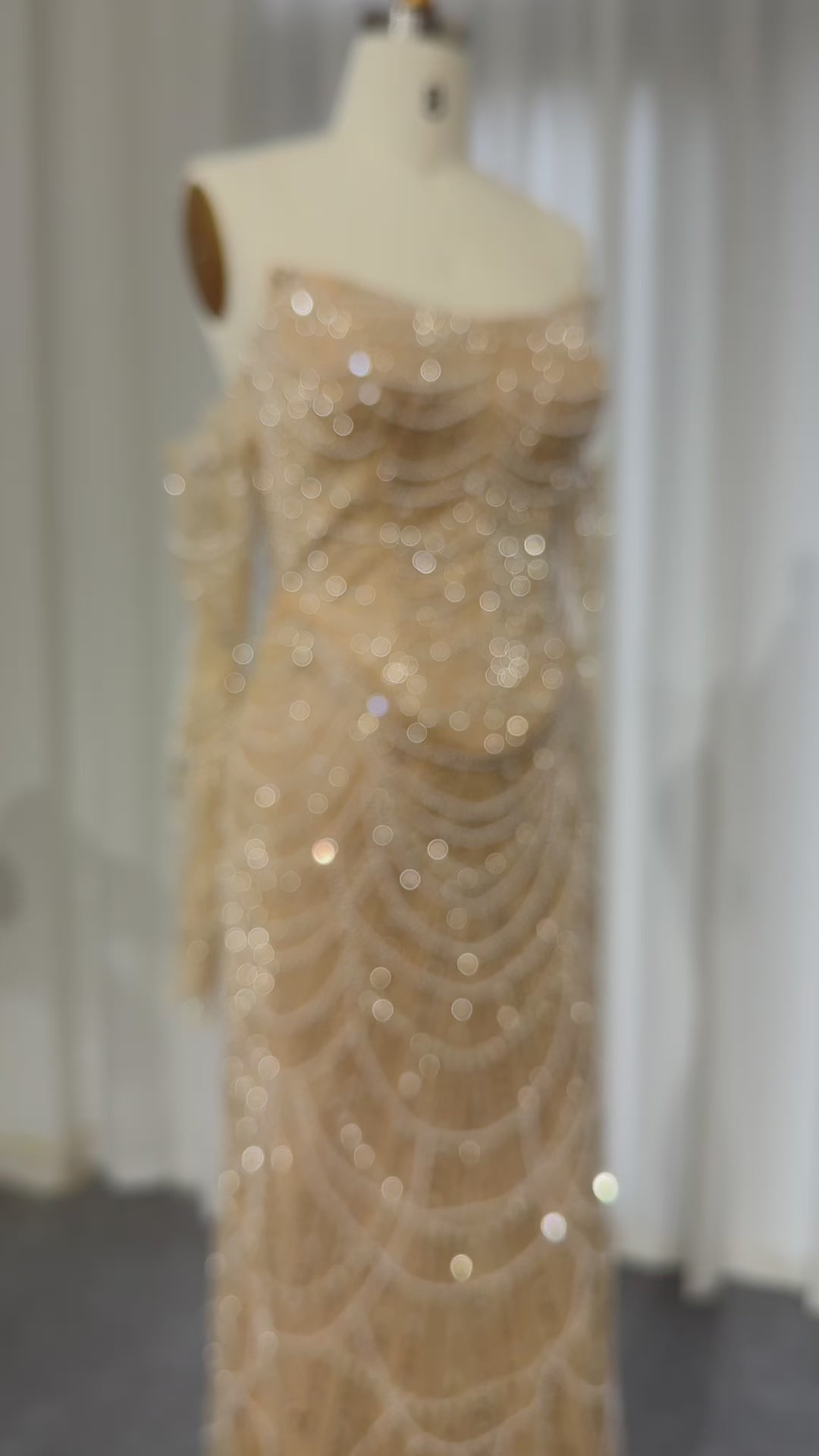 Indulge in elegance with our Luxury Beaded Black Strapless Evening Dress with Sleeves! This stunning dress features exquisite beading, a flattering strapless neckline, and elegant sleeves for added coverage. Perfect for a glamorous evening event, this dress will make you feel confident and beautiful all night long!