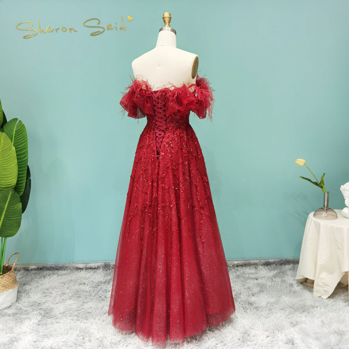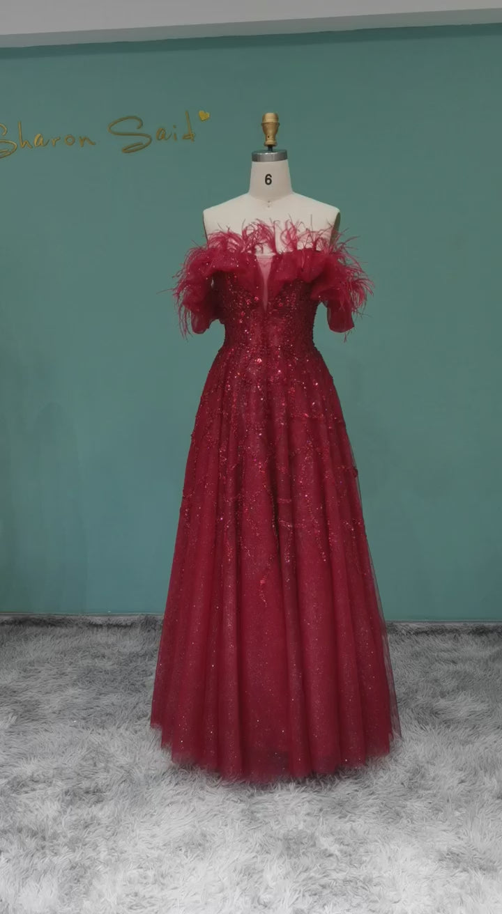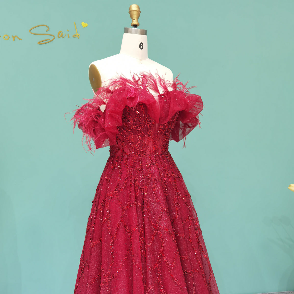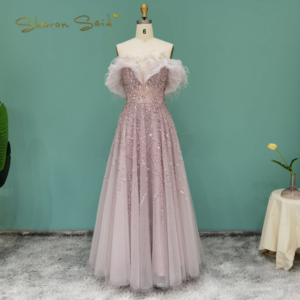 Luxury Feather Silver Beaded A-Line Evening Dress SS081