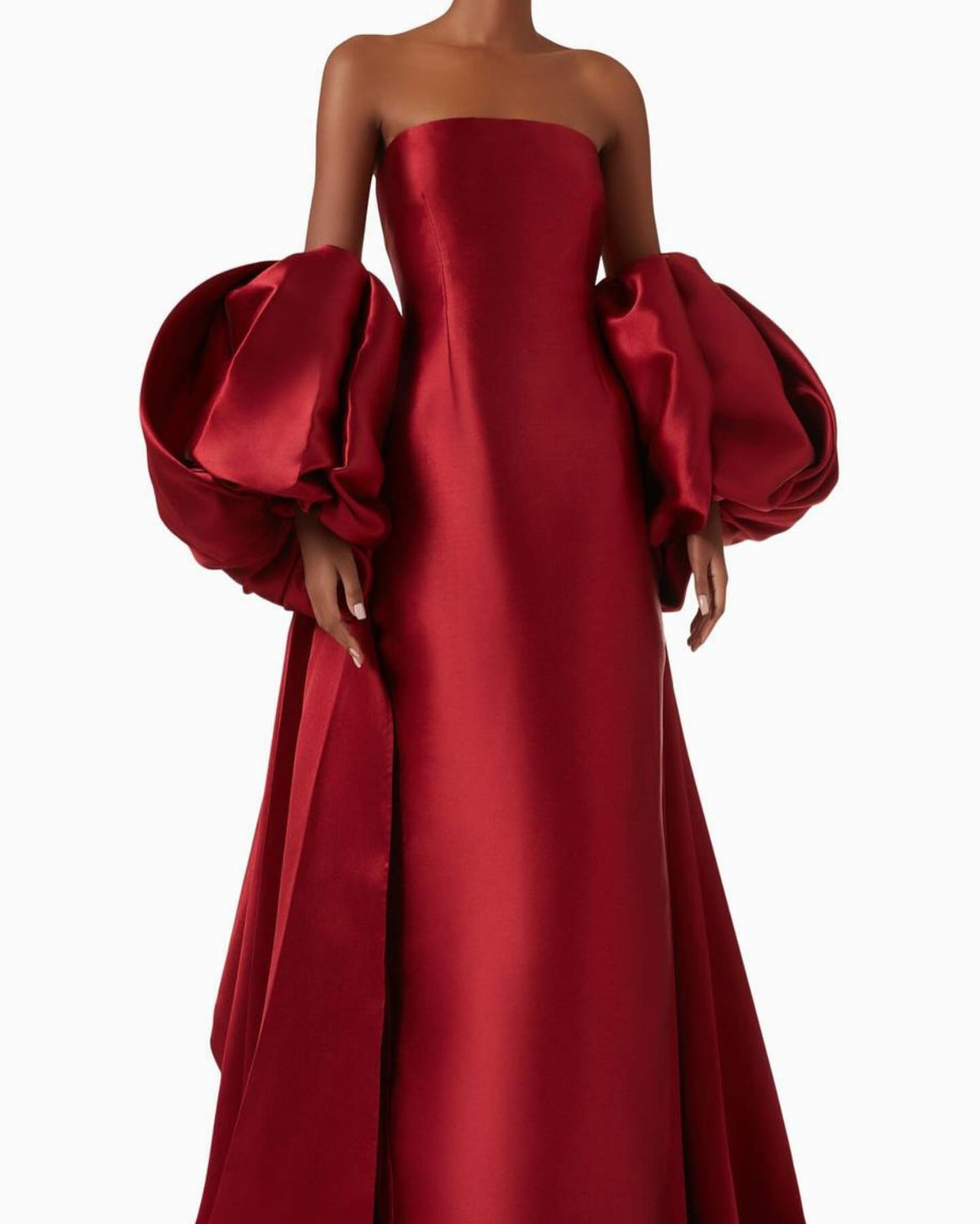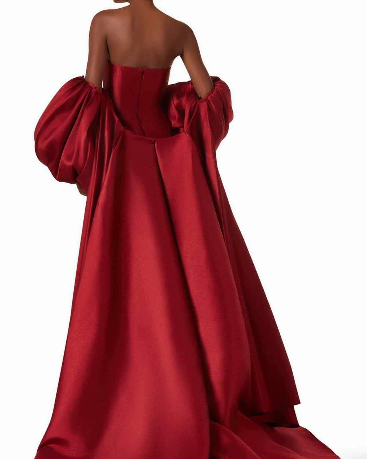 Elevate your formal attire with this chic wine red strapless evening dress with overskirt SF158. The strapless design offers a sleek and modern look, while the overskirt adds a touch of elegance and movement. Perfect for any special occasion, this dress will make you stand out with its flattering silhouette.