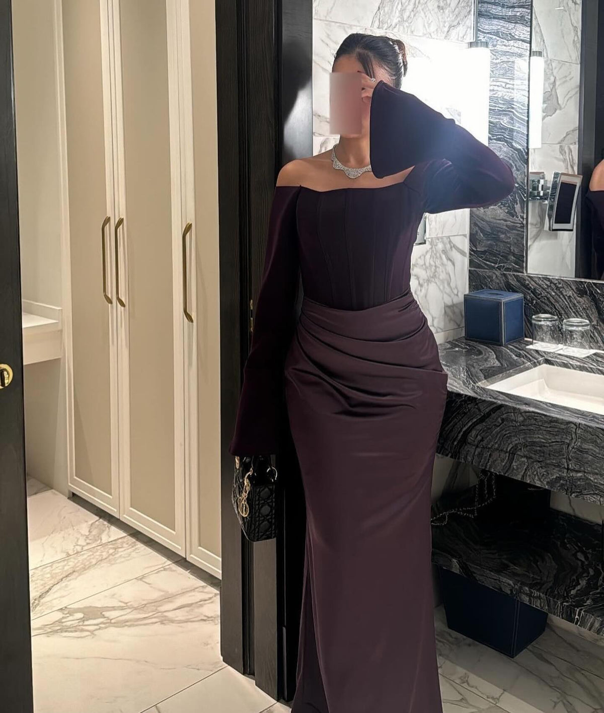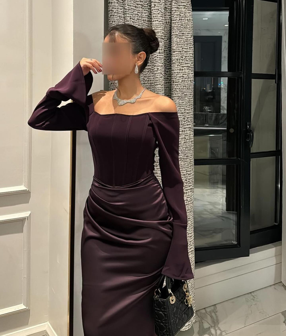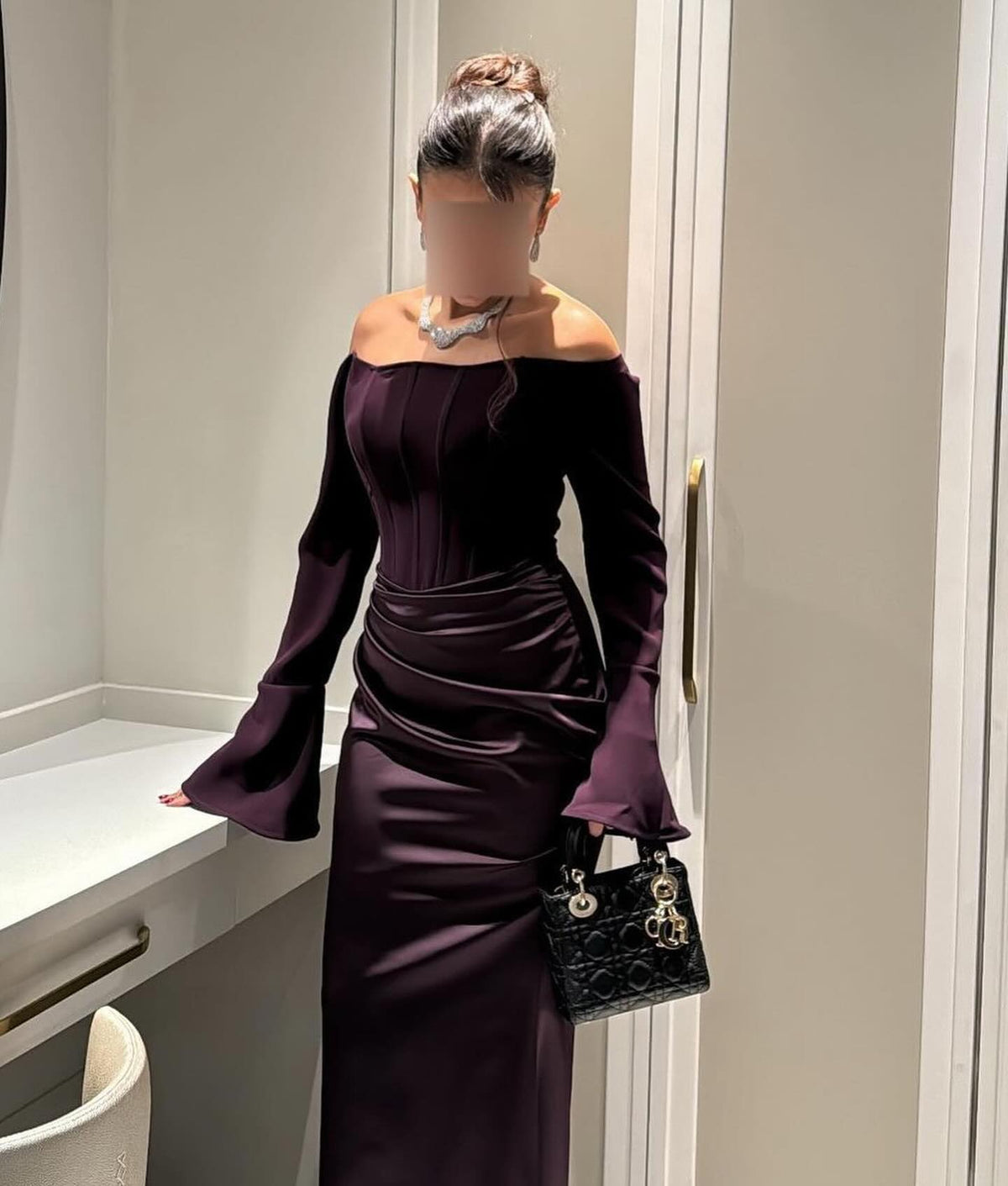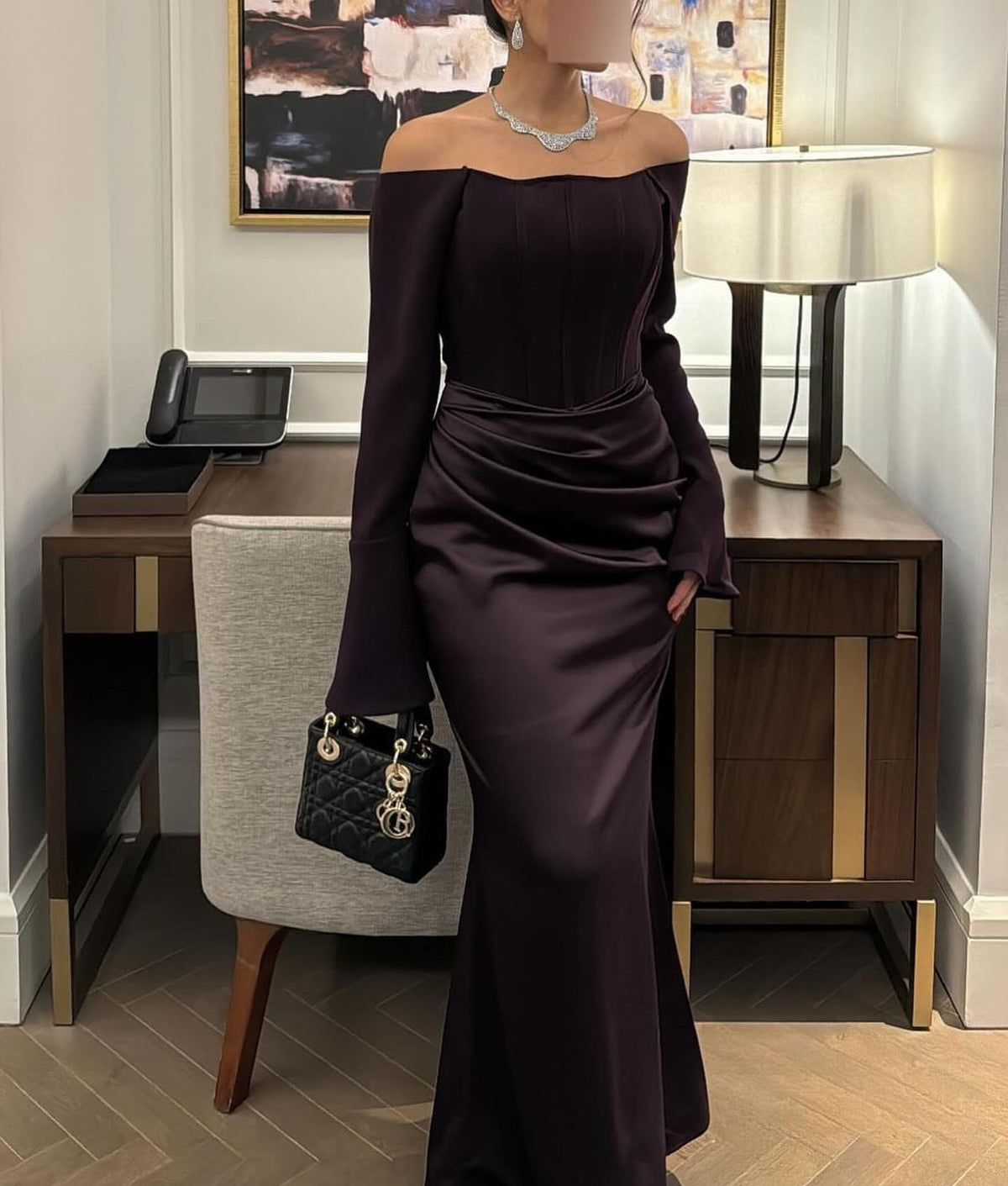 Elegant Off Shoulder Cabernet Satin Evening Dress SF509