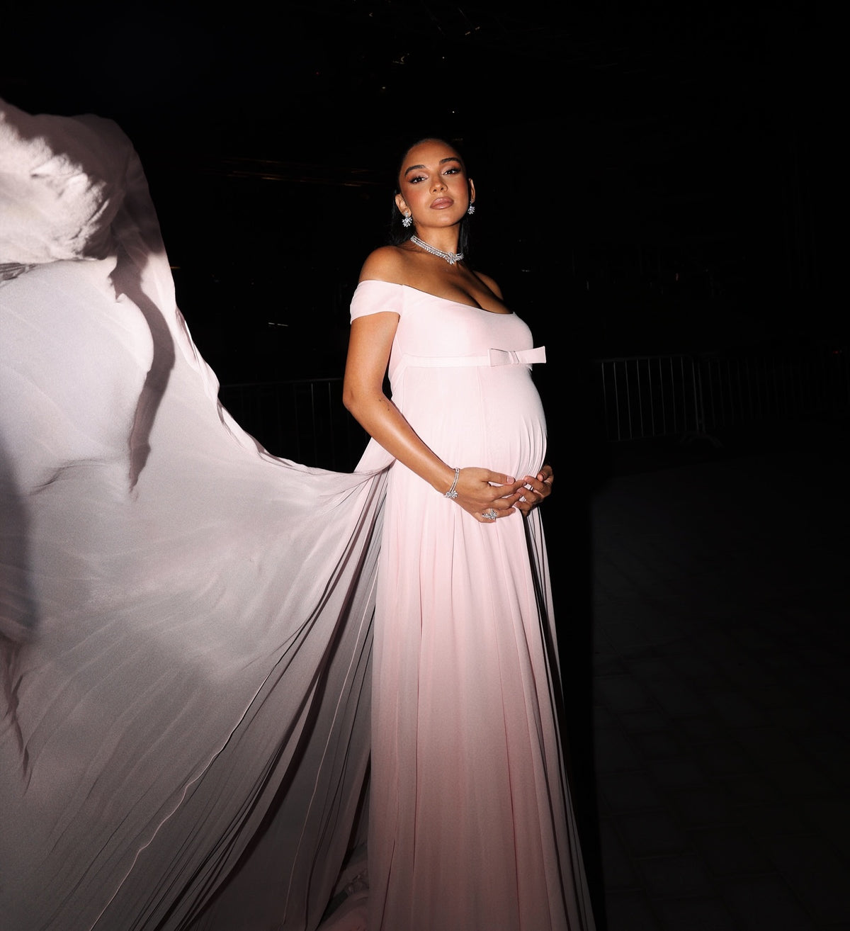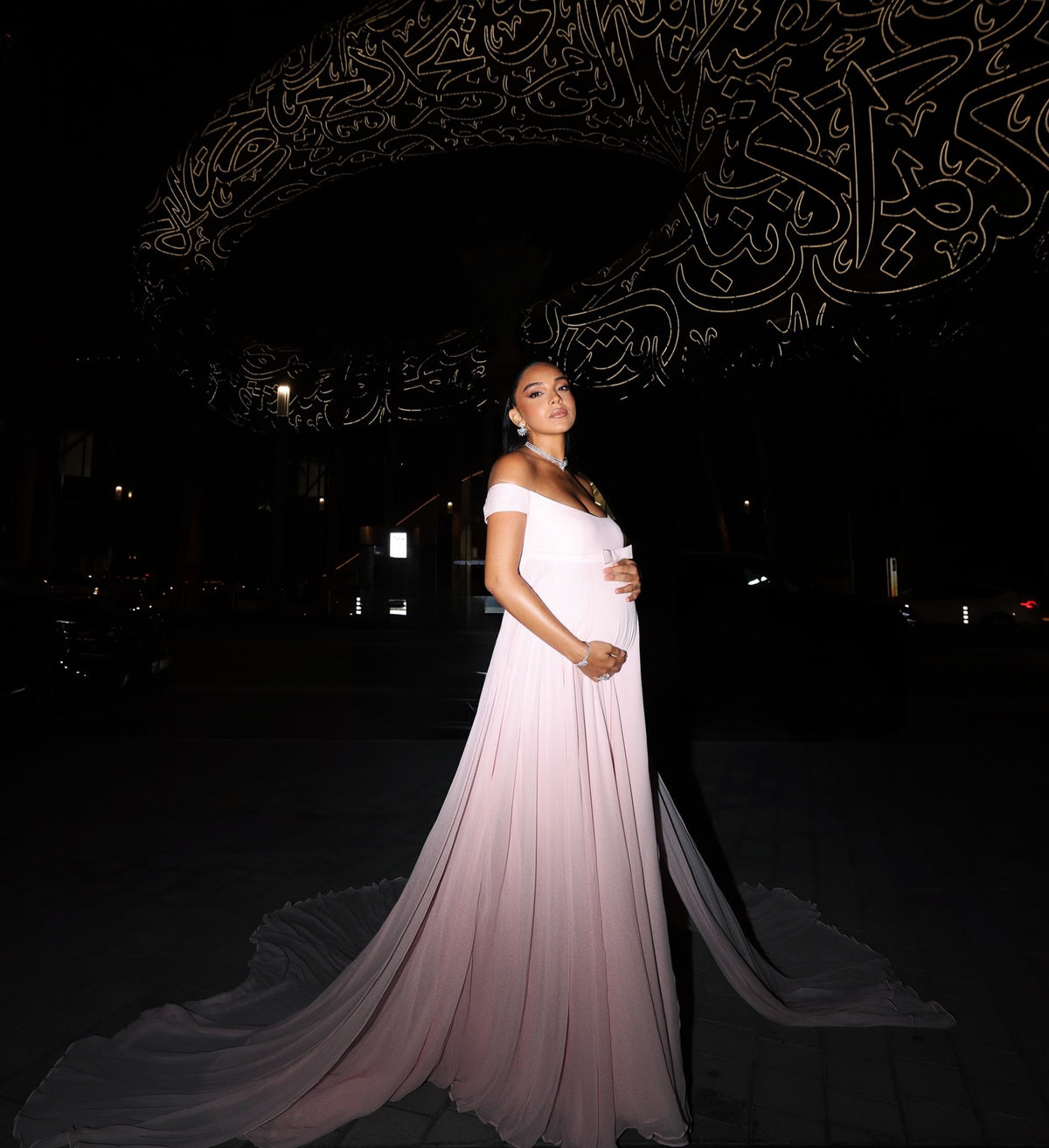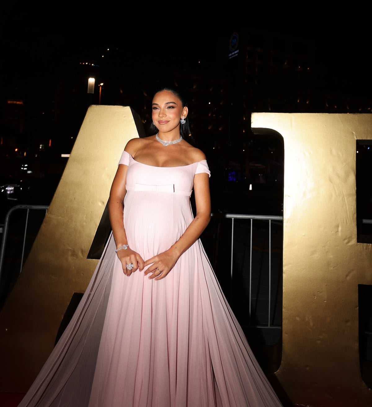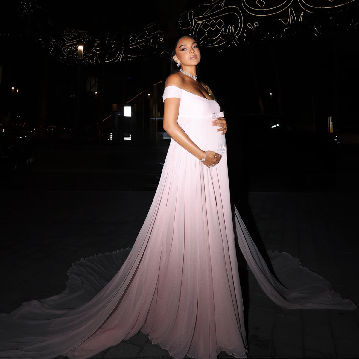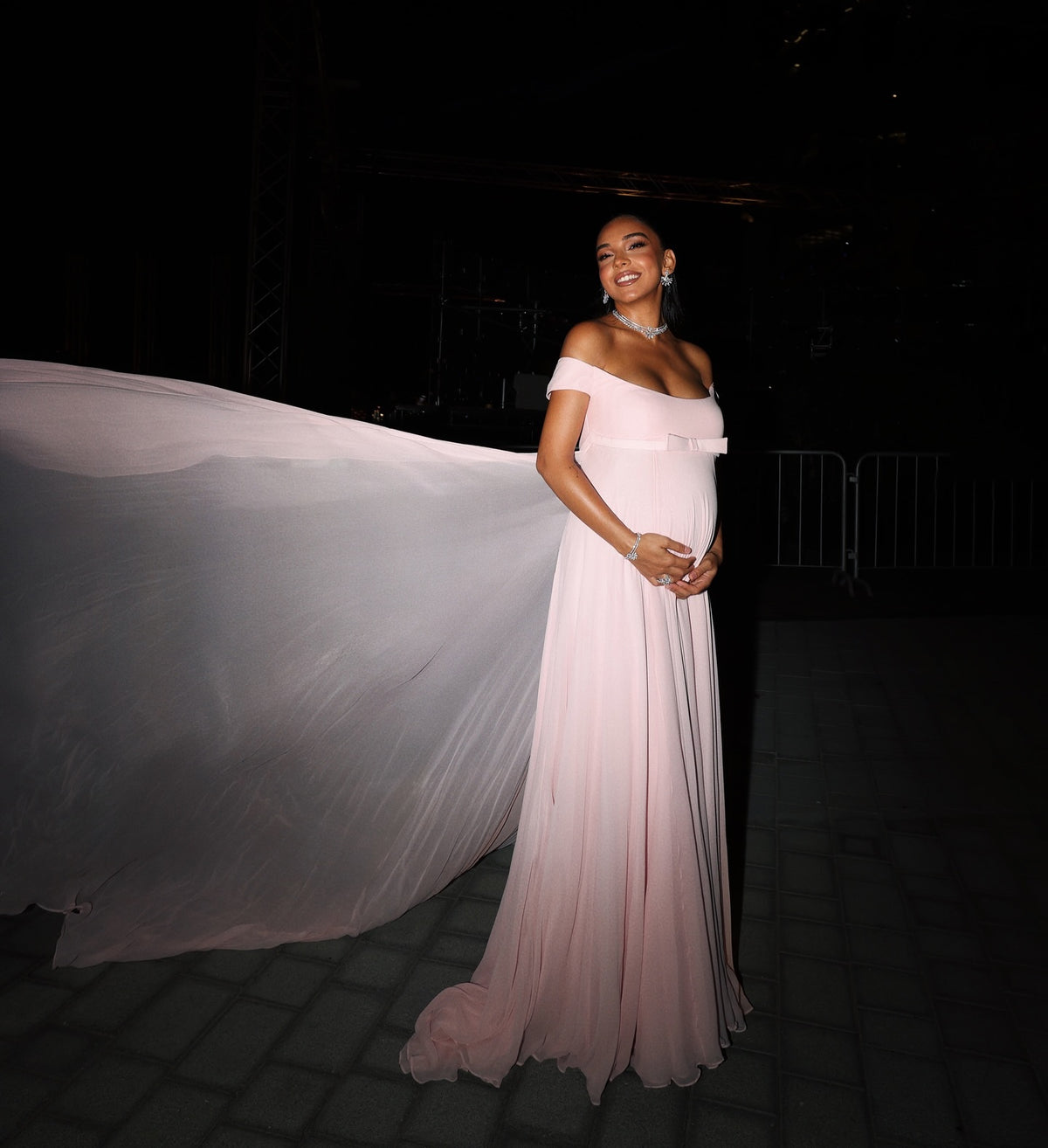 Elegant Off Shoulder Pink Evening Dress with Overskirt SF328
