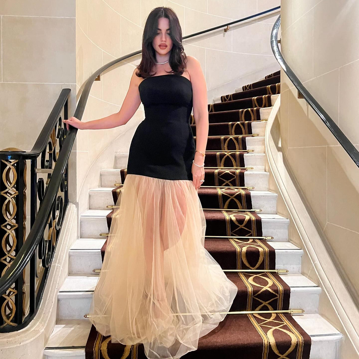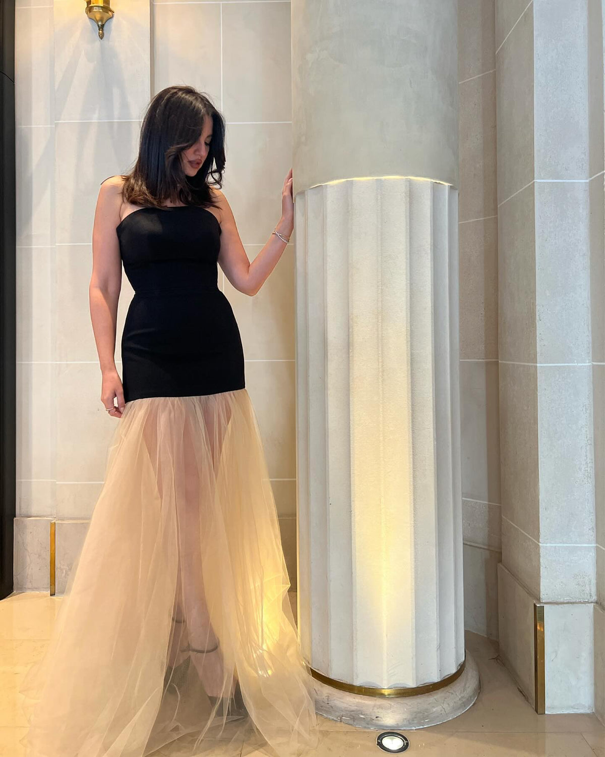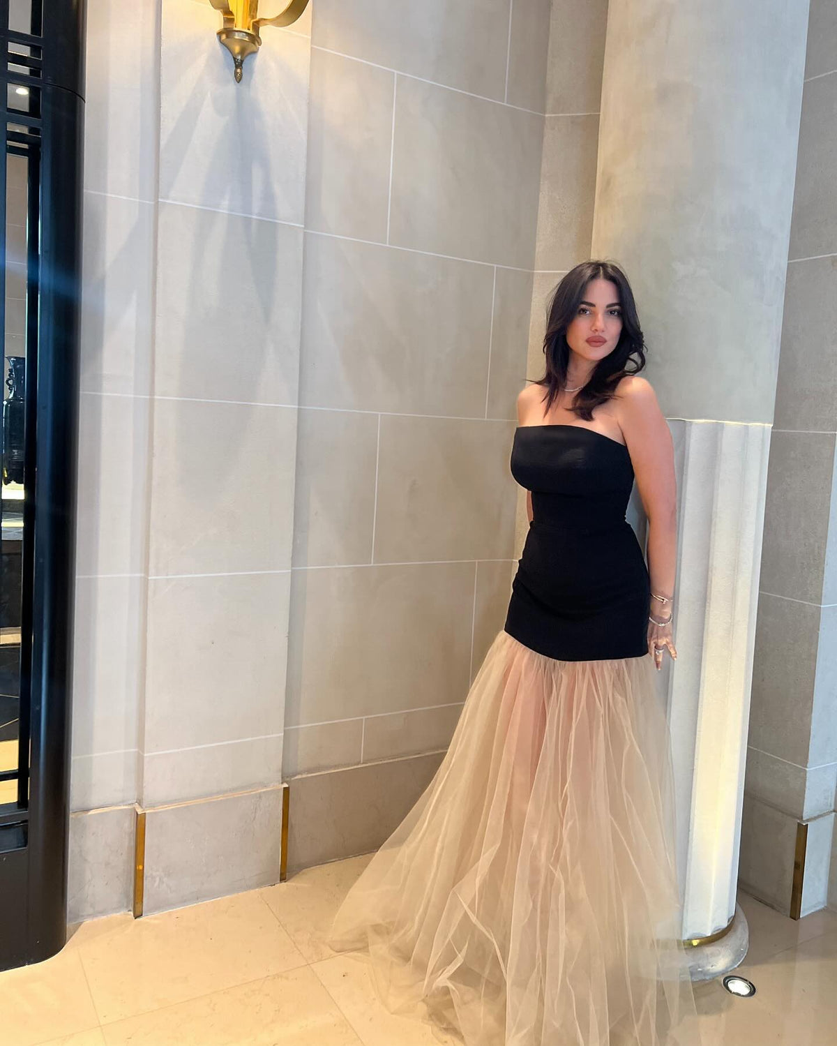 This elegant black mermaid evening dress SF315 features a flattering strapless design for a touch of sophistication. Made with high-quality materials, the dress drapes beautifully to accentuate your curves. Perfect for formal events, weddings, or red carpet occasions, this dress is a must-have for any special occasion.